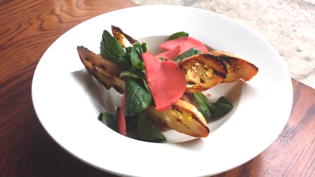 Next we ordered an app of liver mousse. Delicious, light and creamy. Topped with pickled radish and some greens.