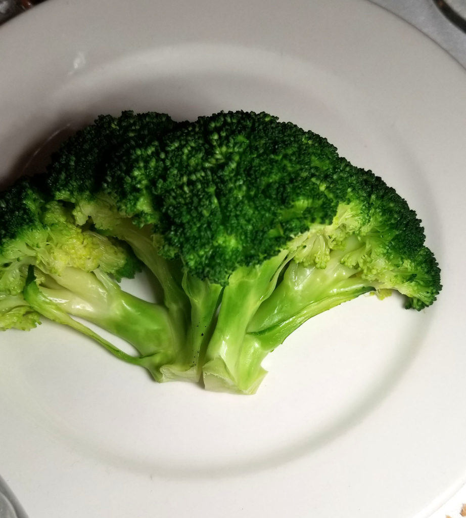 The broccoli, on the other hand, completely phoned in. Lame. Simply steamed and flavored with some salt or butter.
