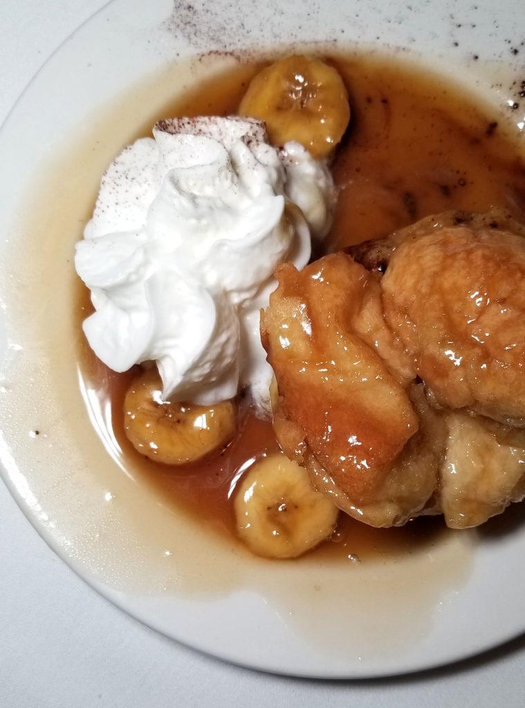 My wife ordered that, and I think the ultimate meal here would be to get the gumbo to start, the steak and etouffe to share as entrees with a side of Oysters Rockefeller, and you can finish up with this bread pudding for dessert: