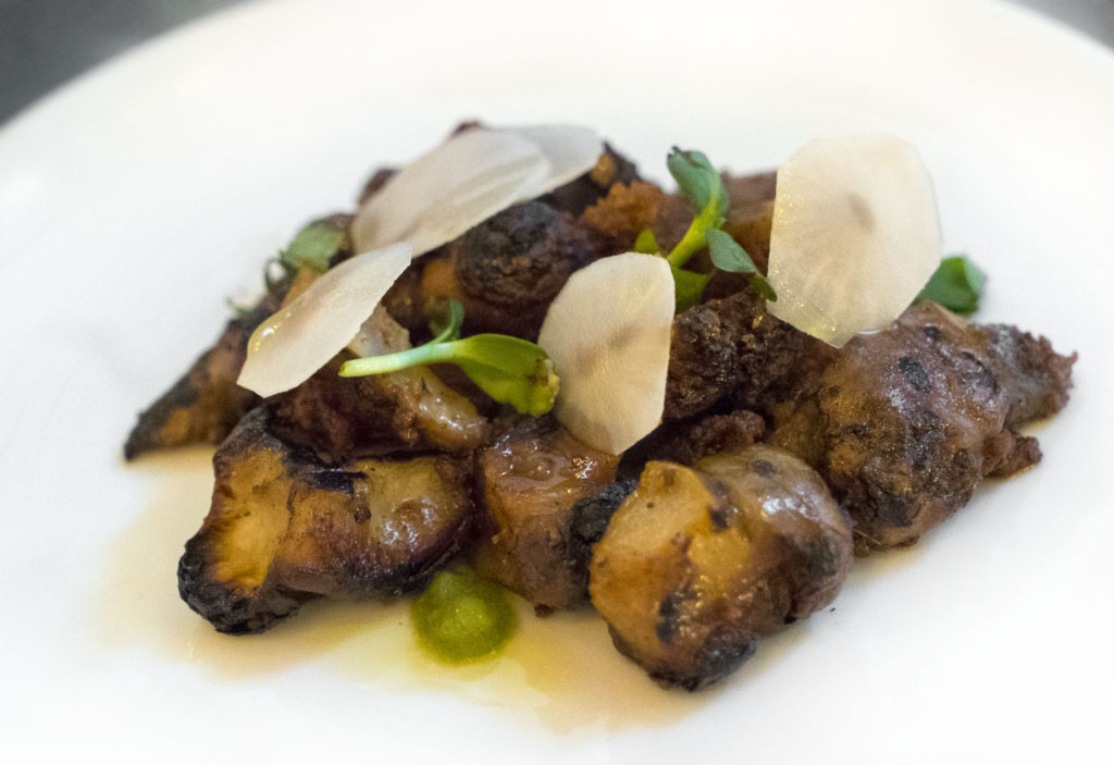 There are only a handful of places doing this here in the city (one of which is Marc Forgione). This version was completely de-boned, so you can just fork and knife the shit out of this and eat everything you see on the plate. Let no part of the face go to waste! It’s super crispy all over, and underneath the crackly pig skin face lies a soft, tender meat that’s abundantly entwined with a savory and succulent fatty pig jelly. Fuck yeah, you should order this when you come here. It comes with grilled peach and sweet beans.