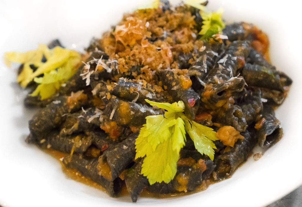 Okay so now that the negative bummers are out of the way, let’s get to the outstanding and overwhelming positives. First, this squid ink garganelli pasta dish: