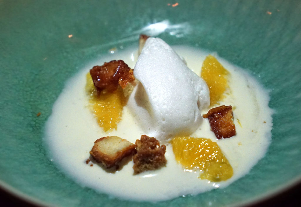 For dessert, we tried this kind of small “floating island” traditional French dessert. It was very flavorful – just small. Luckily we were pretty full at that point. The best were the little crunchy bits of French toast flavored croutons in there. I want a bag of those to go!