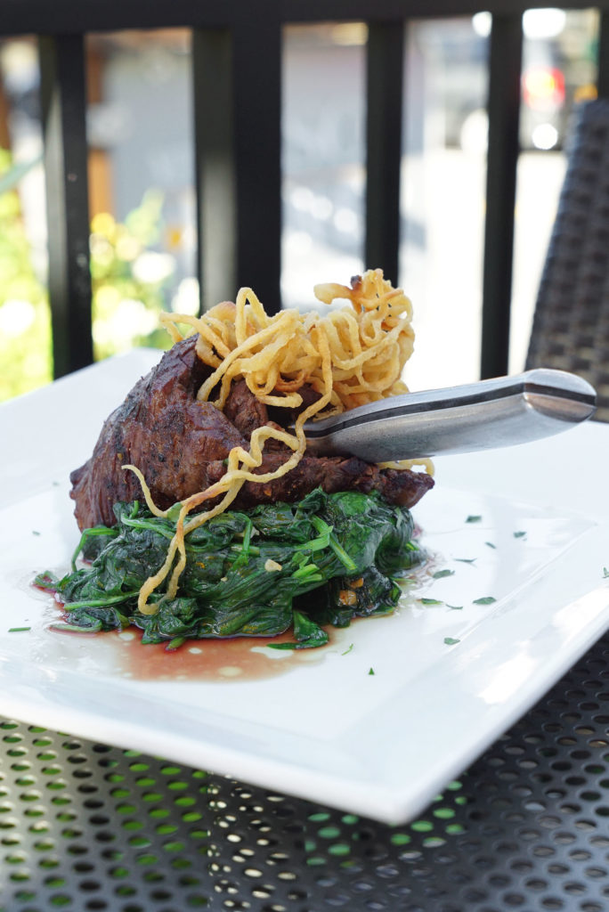 As you can see it came with crispy fried union strings and sautéed garlic spinach.