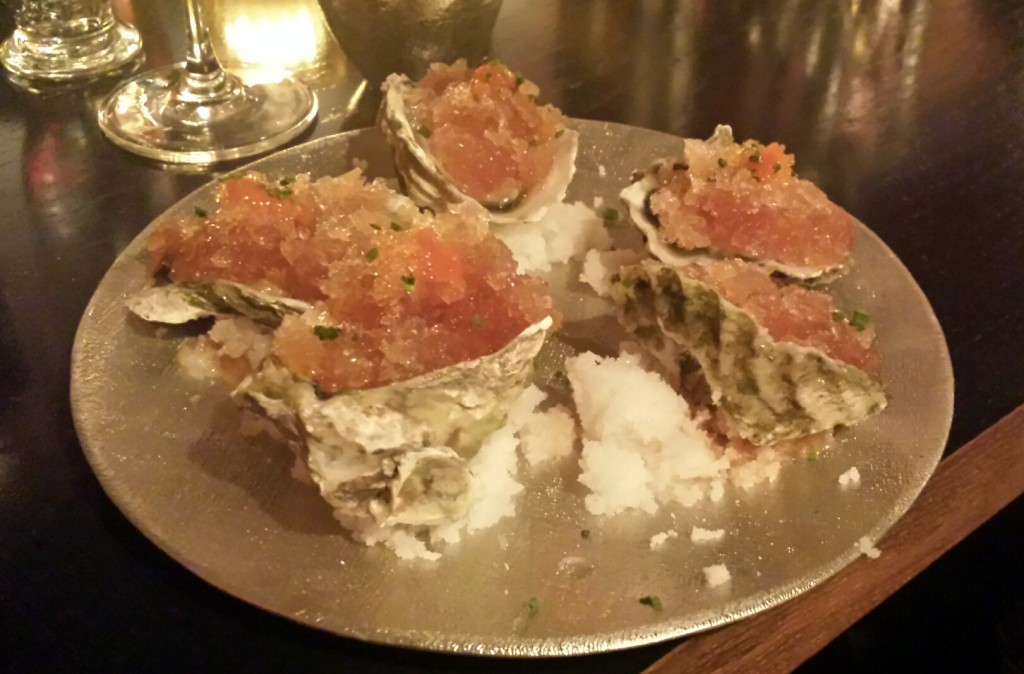 We also had a Kumamoto oyster with ponzu ice to go along with the with sparkling sake. It was tart, with a sour, grapefruit type of finish, but very crisp and clean.