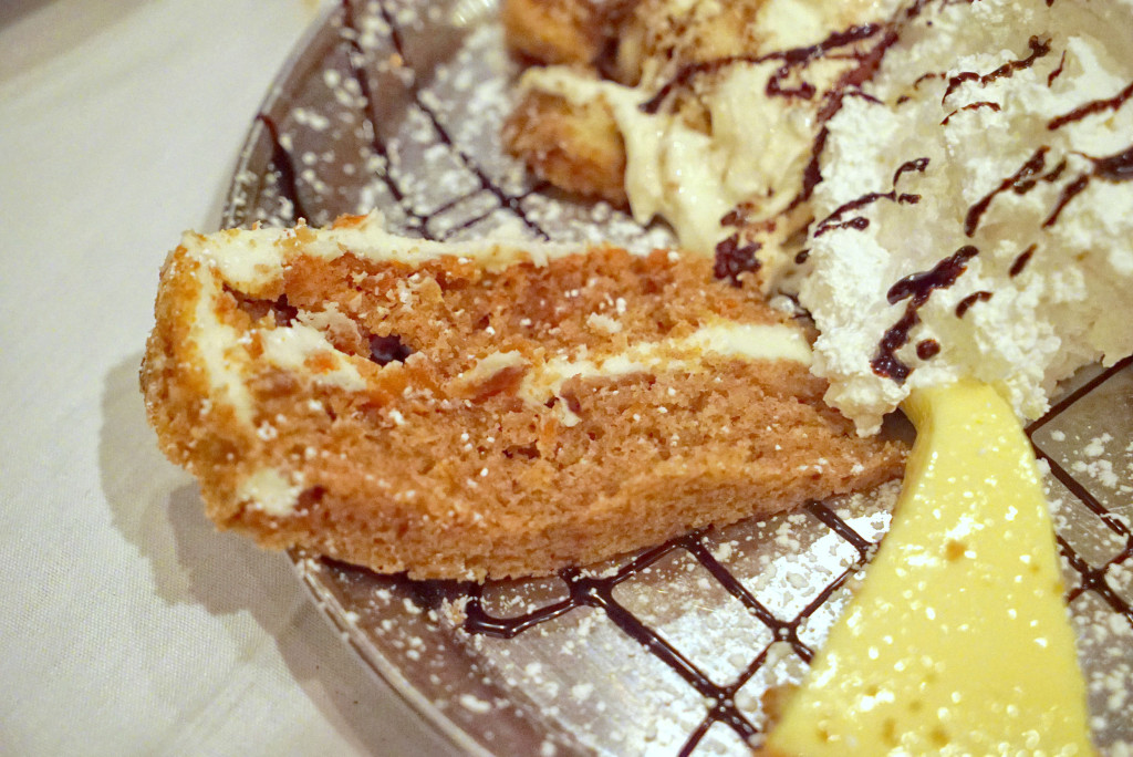 The addition of raisins into the cake was a really smart touch, as it adds a pop of sweetness and moisture to the occasional bite. This was probably my favorite of the dessert sampler as well, but as I mentioned above, I have some favorites from my wife that really can’t be topped. One of them happens to be her carrot cake.