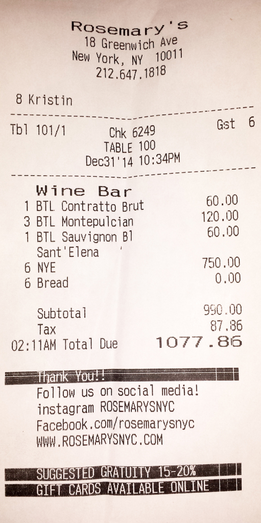 However, an even shittier way to end a meal is seeing this whopper at the end. Yikes! Too many bottles of wine (they don’t serve hard liquor).