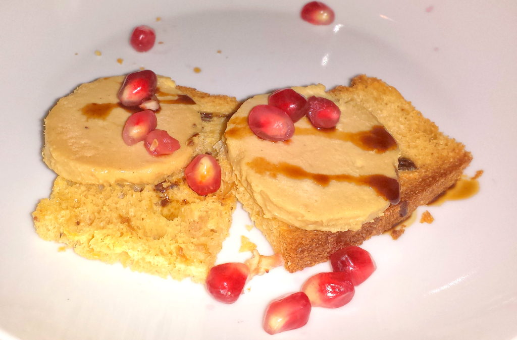 The fois gras was excellent. The pomegranates probably were not needed. Perhaps maybe some caramelized onion jam or some pickled items would have been a better choice to pair with it.