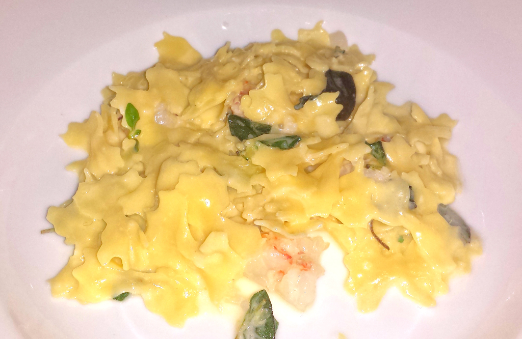 The baby bow tie pasta with rock shrimp and lemon was good, but there was a bit of a bitter aftertaste due to the lemon. Otherwise it was a nice dish.