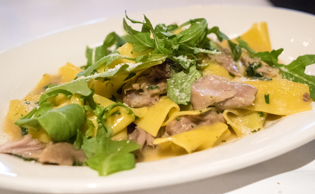 For the entrees, my wife went with the malfatti, which is a broad pasta noodle that was served in a lemony brown butter sauce with suckling pig. This was great. The pasta was perfectly cooked al dente and the pig was tender and flavorful.