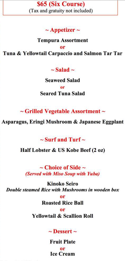 After that came the surf and turf: grilled half lobster and a generous portion of kobe beef (the menu says 2oz but it was more like 4oz). The beef was served with a nice dipping sauce that brought out the earthy flavors of the meat. I generally prefer a steamed lobster but the grilled one here wasn’t too bad. Lots of times places will mangle the grilled lobster and overcook it. Not the case here.
