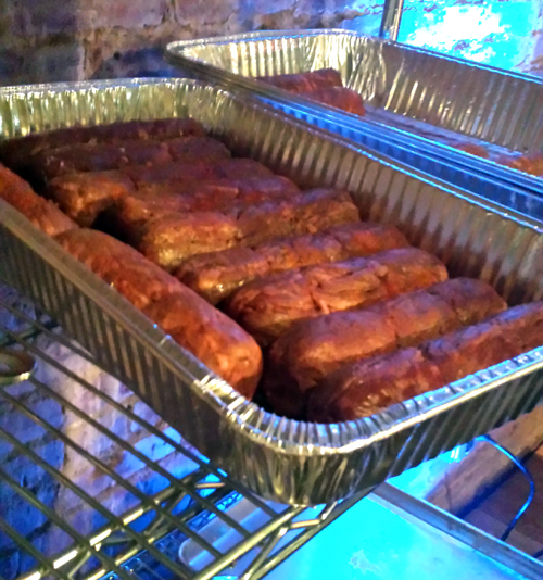 slicing the pork
