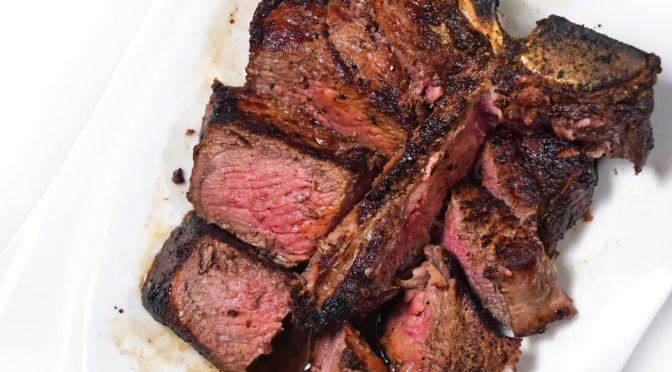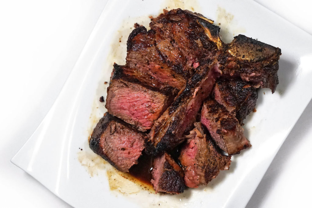 However, I think the issue with this cut is the method of preparation. We both felt that the filet side had more flavor than the strip side, which is odd and backwards. Only a few bits of the strip side were better, along the outside edge. That ridge of fat was very tender and edible, which was a nice change. 8/10.