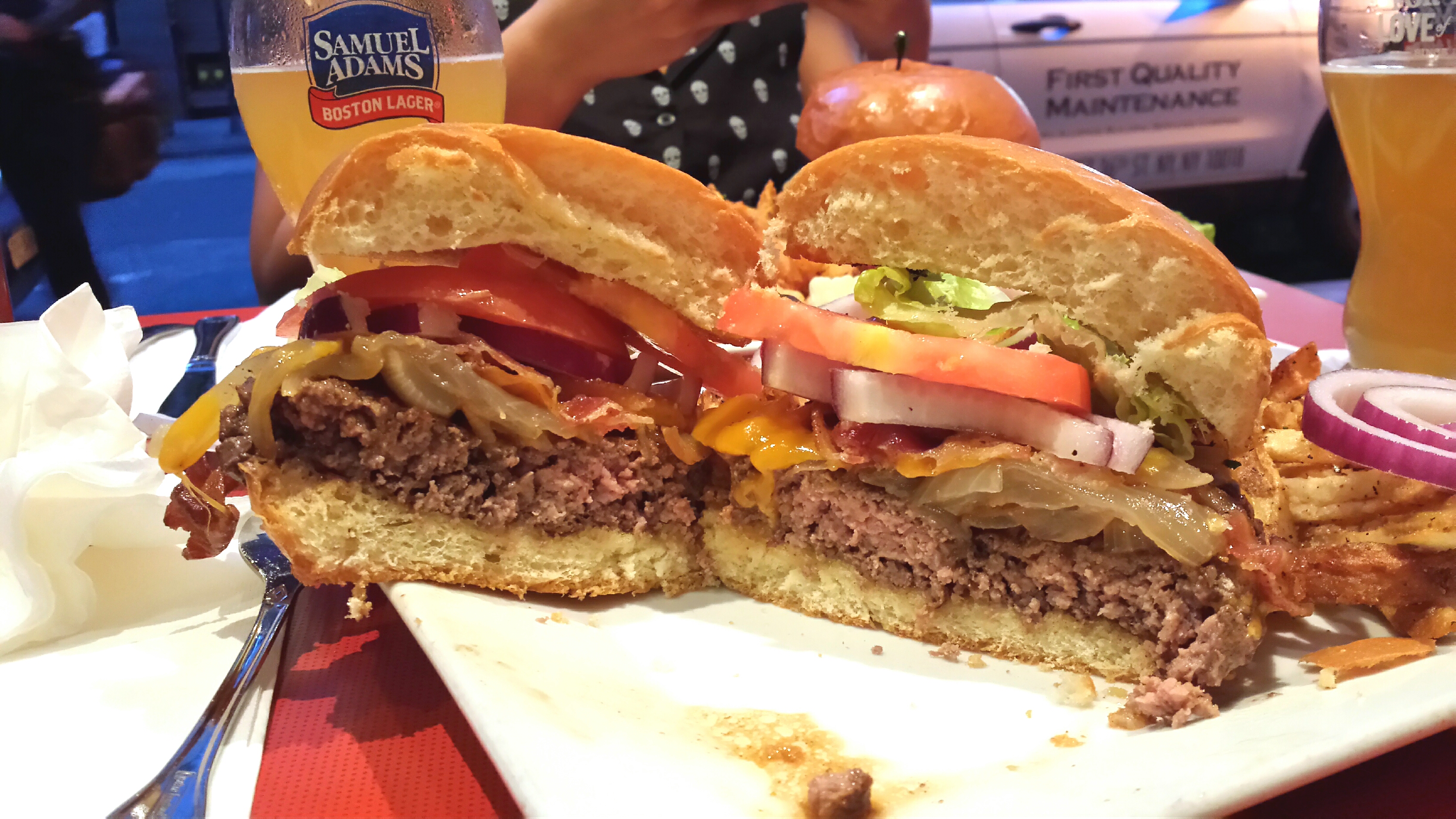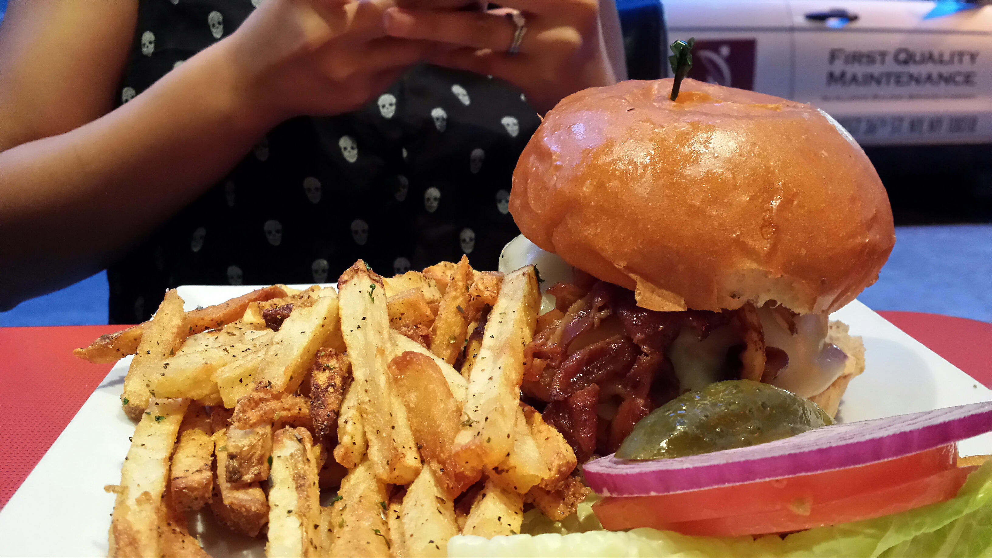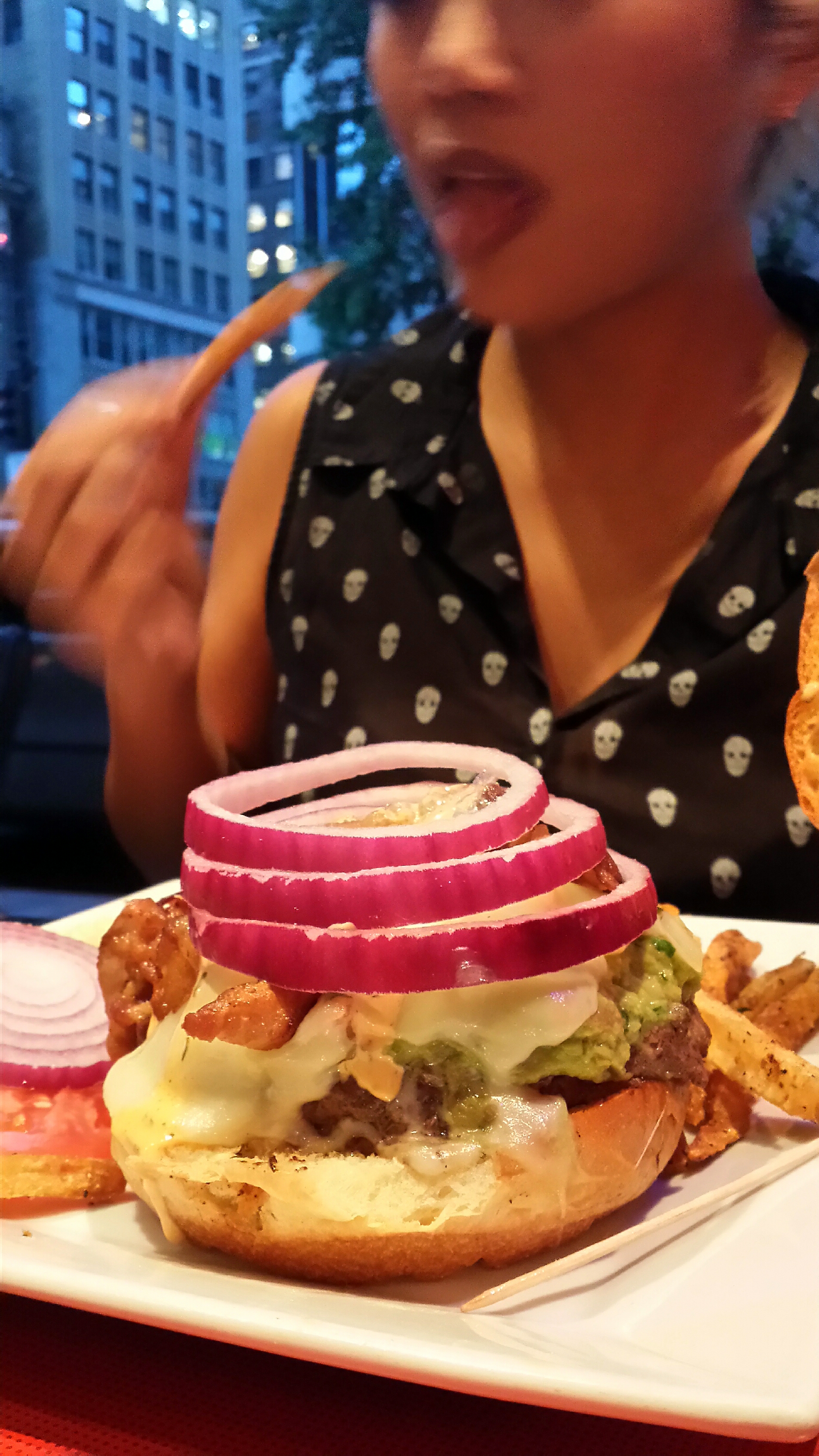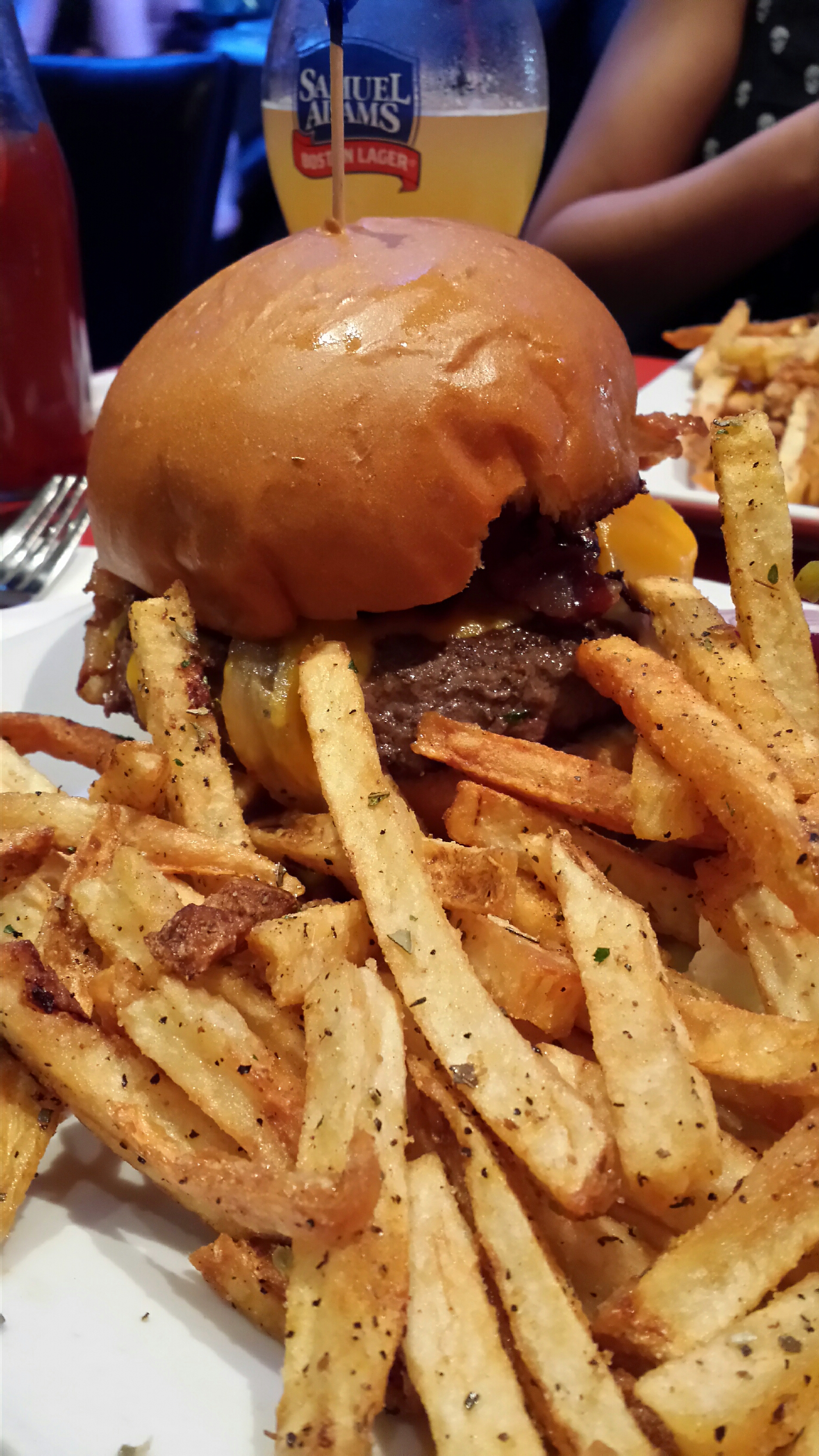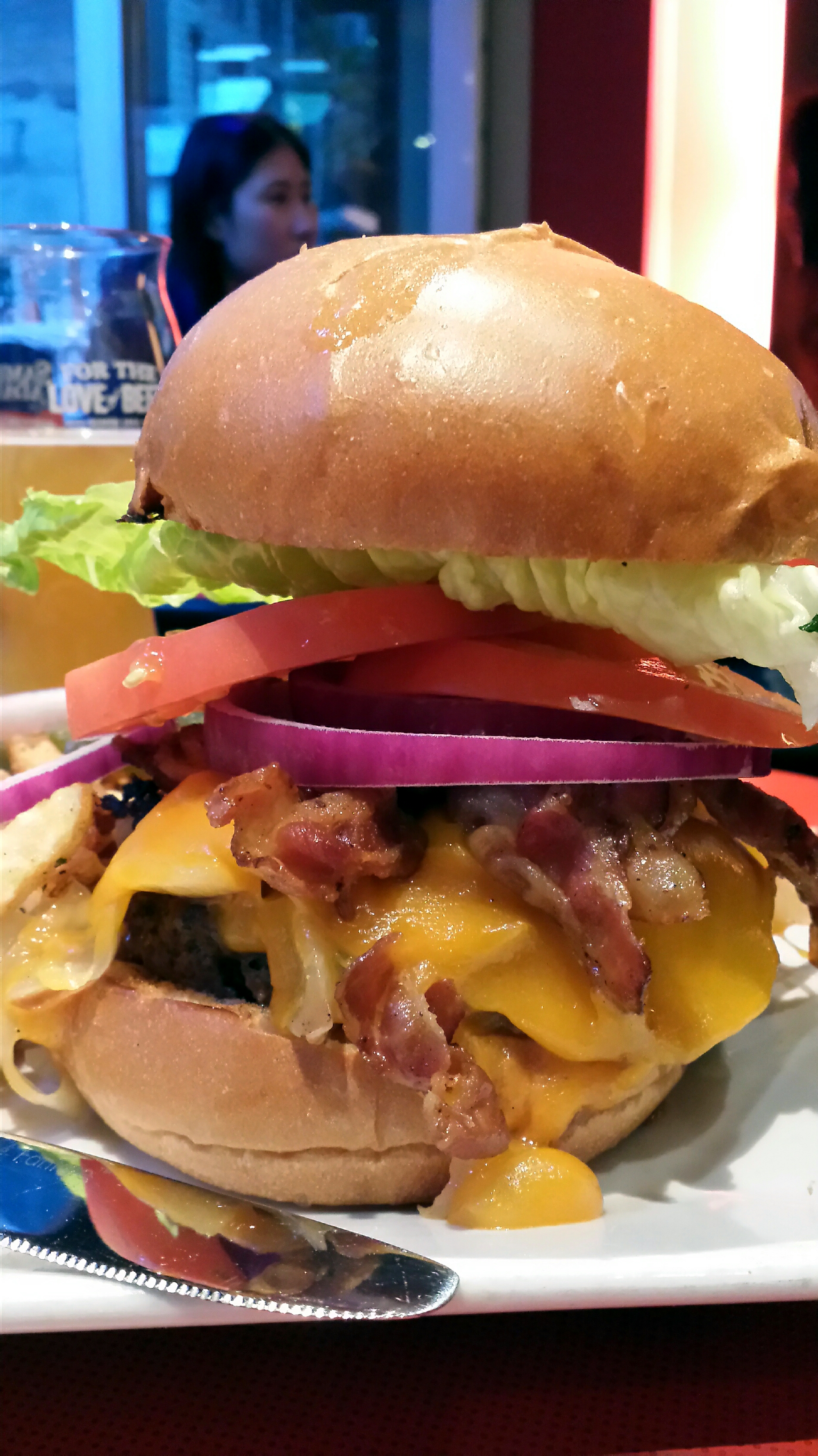 I tried the Brooklyn burger, which involved cheddar, grilled onions and bacon.
