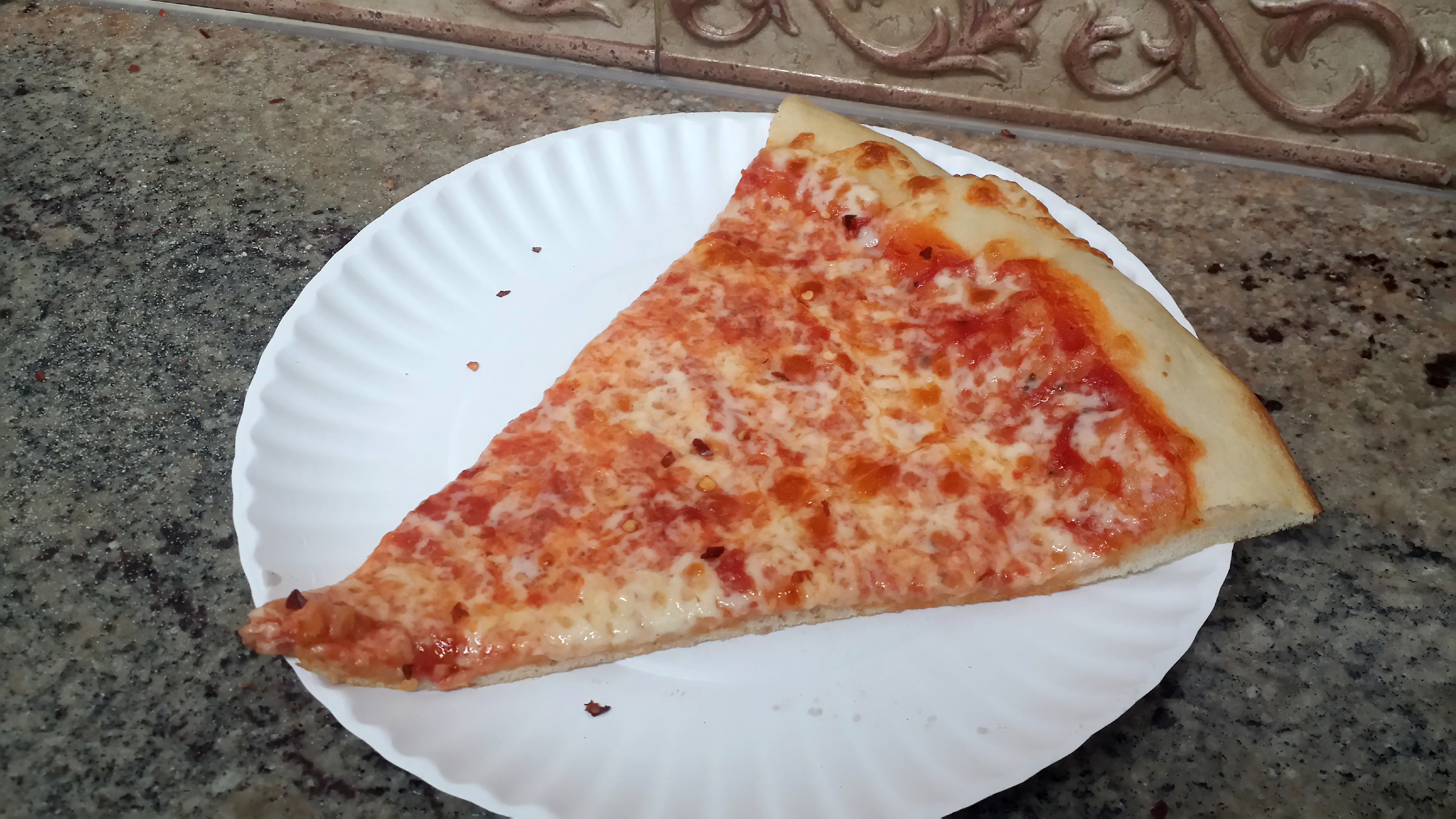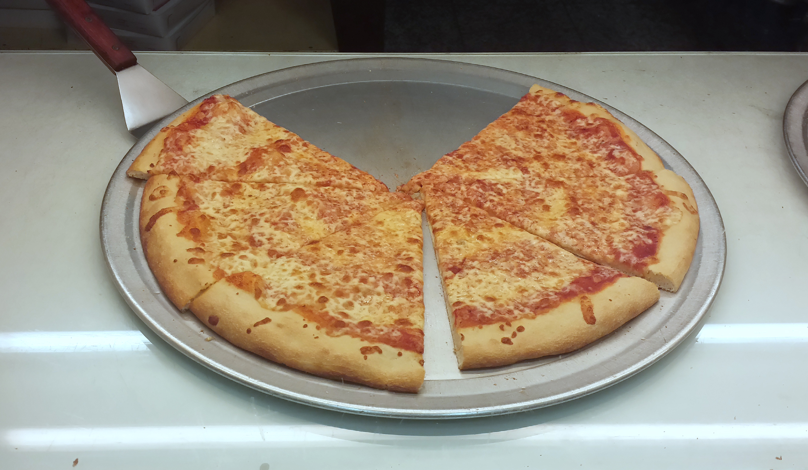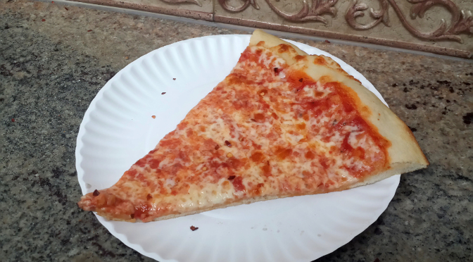 I love the idea of a cheap slice of pizza, so I made it my mission to try a bunch of these places to find the best one. This category-3 pizza shop is actually okay.