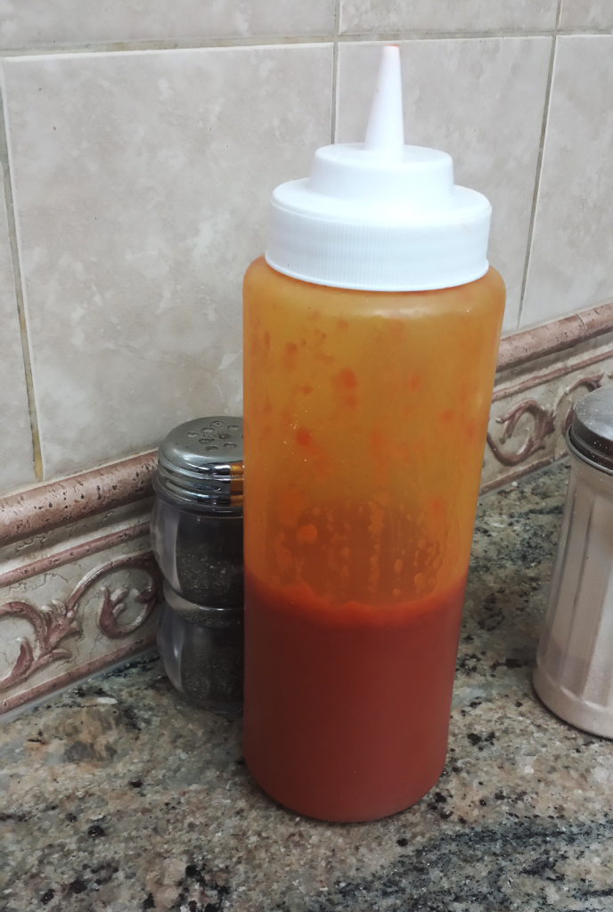 The crust is usually crispy, though a little dry due to lack of enough sauce. You can always throw on a little hot sauce if you need that wetness:
