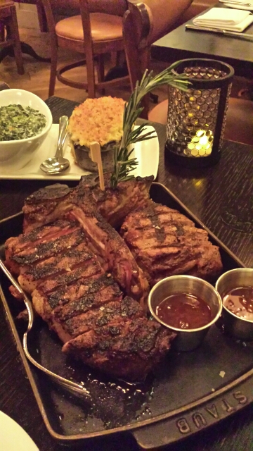 The plating was cool here; the porterhouse was served up on a cast iron skillet. This place clearly knows how to serve meat the right way (rested rather than sizzling). The portion size was a bit on the small side at 38oz for two. Don’t get me wrong; I was full, since my tiny wife didn’t eat more than a third of it… but two grown men going at this thing? A bit on the small side.