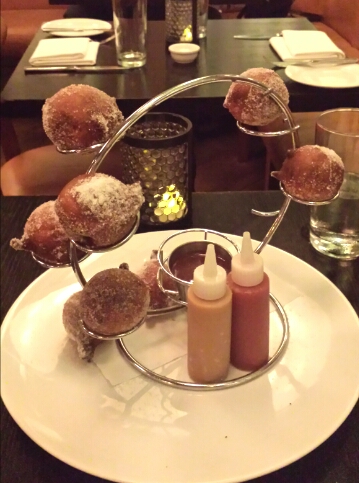 We had a mixed bag here. Our octopus app was incredible. Soft, succulent, and tasty. The creamed spinach was borderline bad. I didn’t like it. It seemed like it was too watery in the cream department, but also not cooked down enough as far as the spinach goes. Tough to explain. The mac & cheese was good though. It had nice crunch on the breadcrumb layer, not too assertive or biting on the cheese, not greasy at all… but a little on the dry side. For dessert we had the doughnuts, which were great (soft, chewy inside, and slightly crispy outside). However the caramel sauce wasn’t too good (too salty). The strawberry and chocolate sauces were nice though.