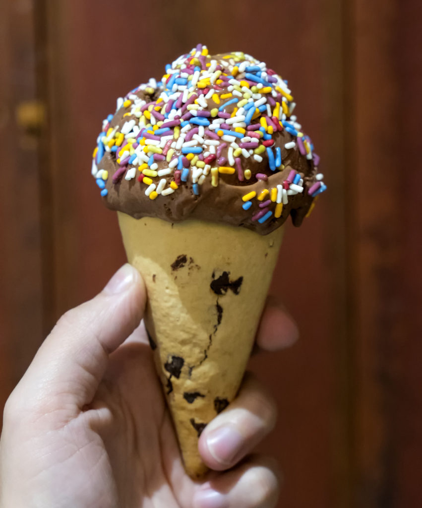 This is expensive, but high quality ice cream. Below is a shot of the Mexican hot chocolate flavor (with cinnamon and spice), and of course some sprinkles on top. It rests comfortably in a cookie cone, which was delicious. If you find yourself in the area, give it a try.