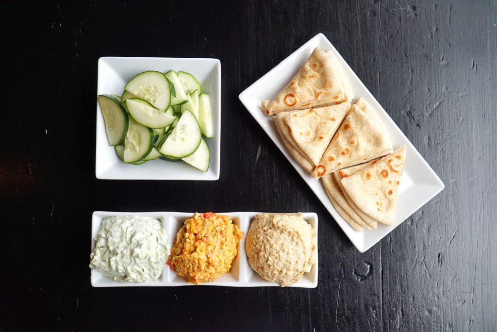 • Tzatziki (left – yogurt with garlic, dill and cucumber)