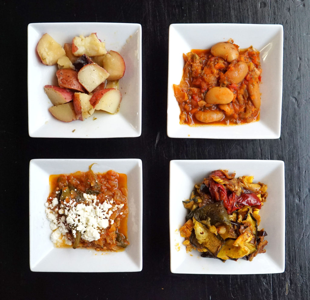 • Okra (braised in tomato basil sauce with crumbled feta)