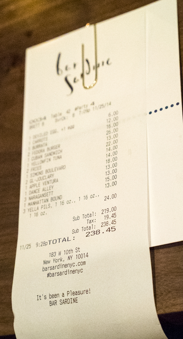 The place got awesomely packed. I snapped a pic of the bar area and some wall art, as well as the not-so-awesome bill, which was a little high but worth every penny.