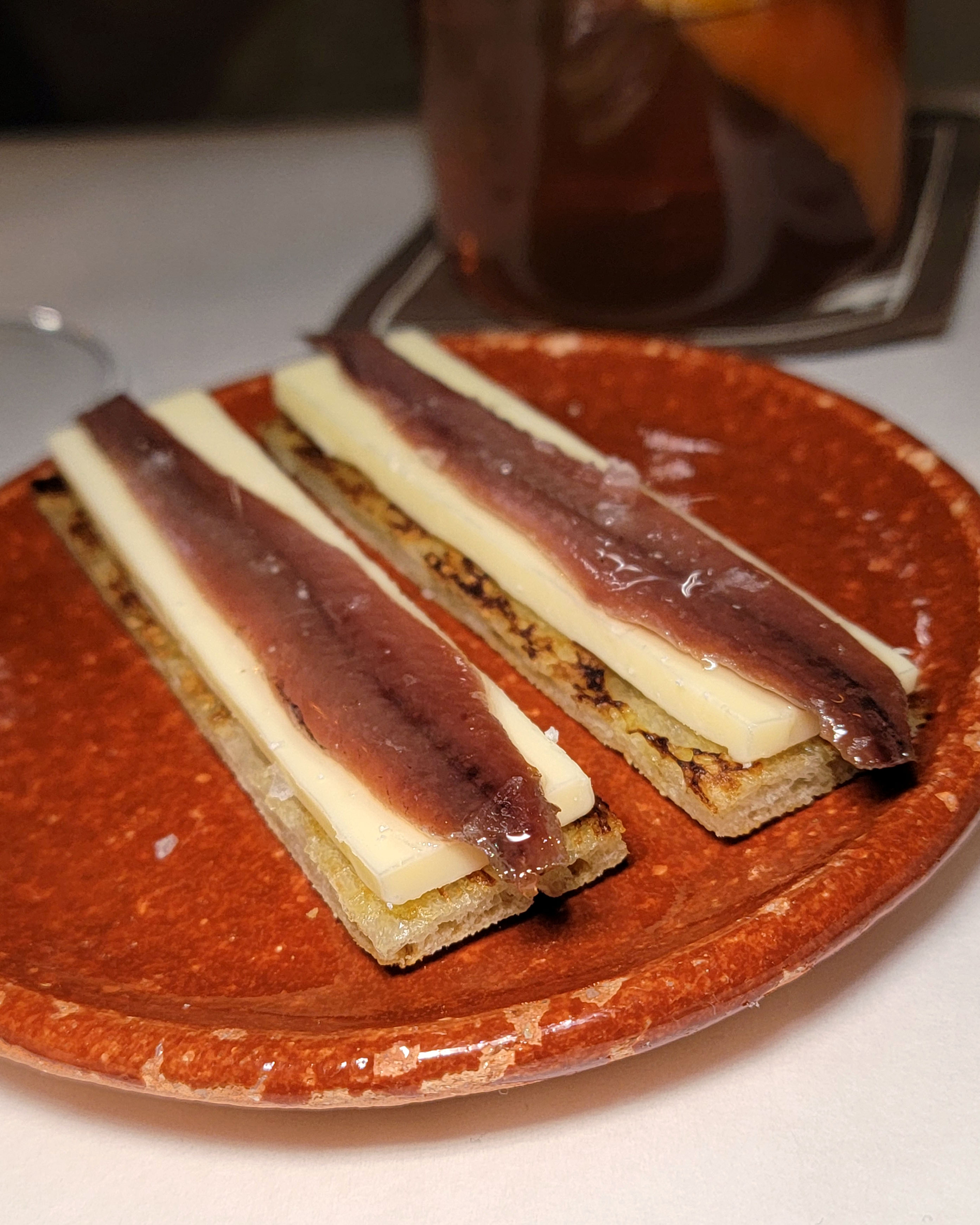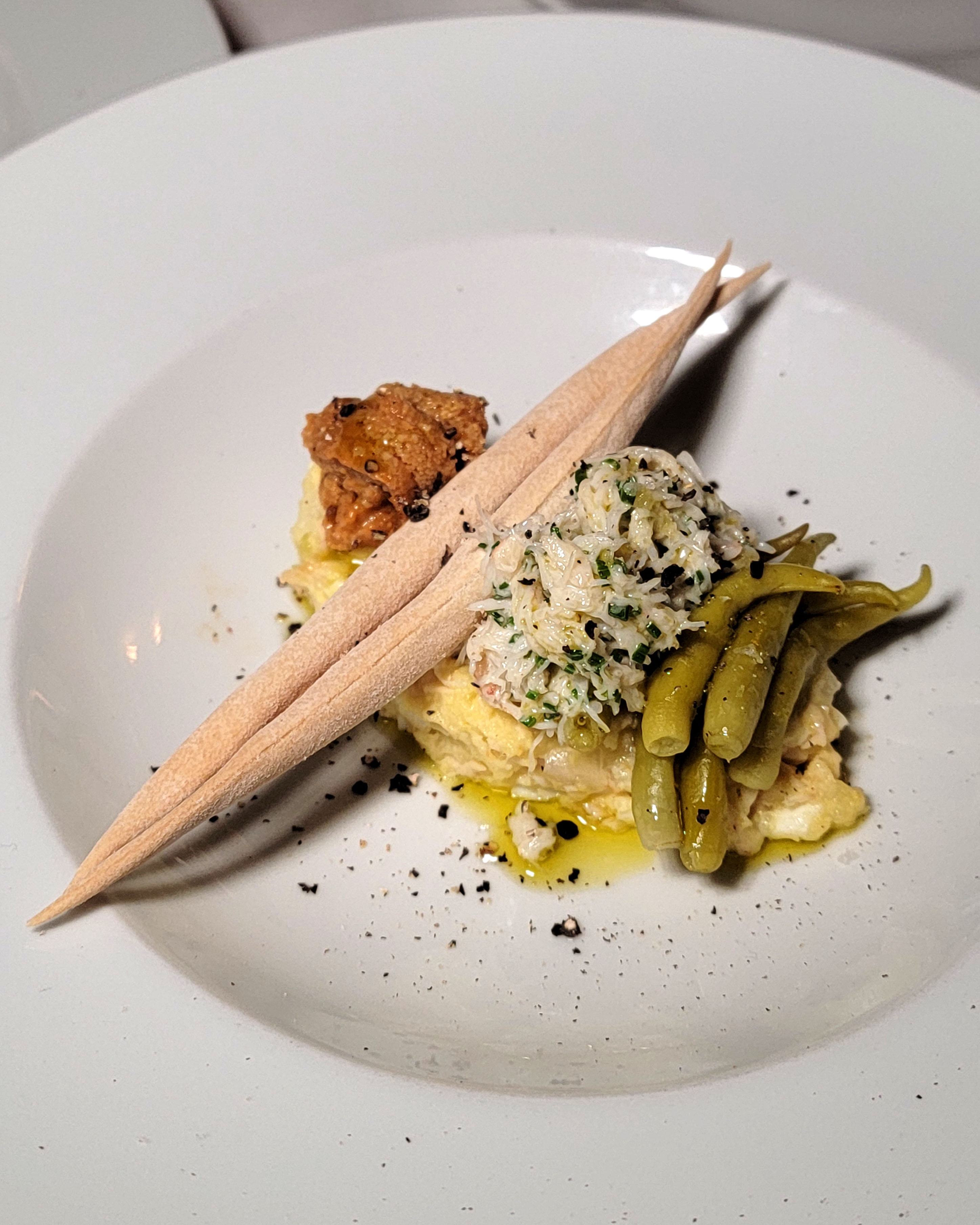 This meal was incredible. We started off with the anchovies with butter, the terrine, the crab and uni pintxos, and the pork belly chicharrones.