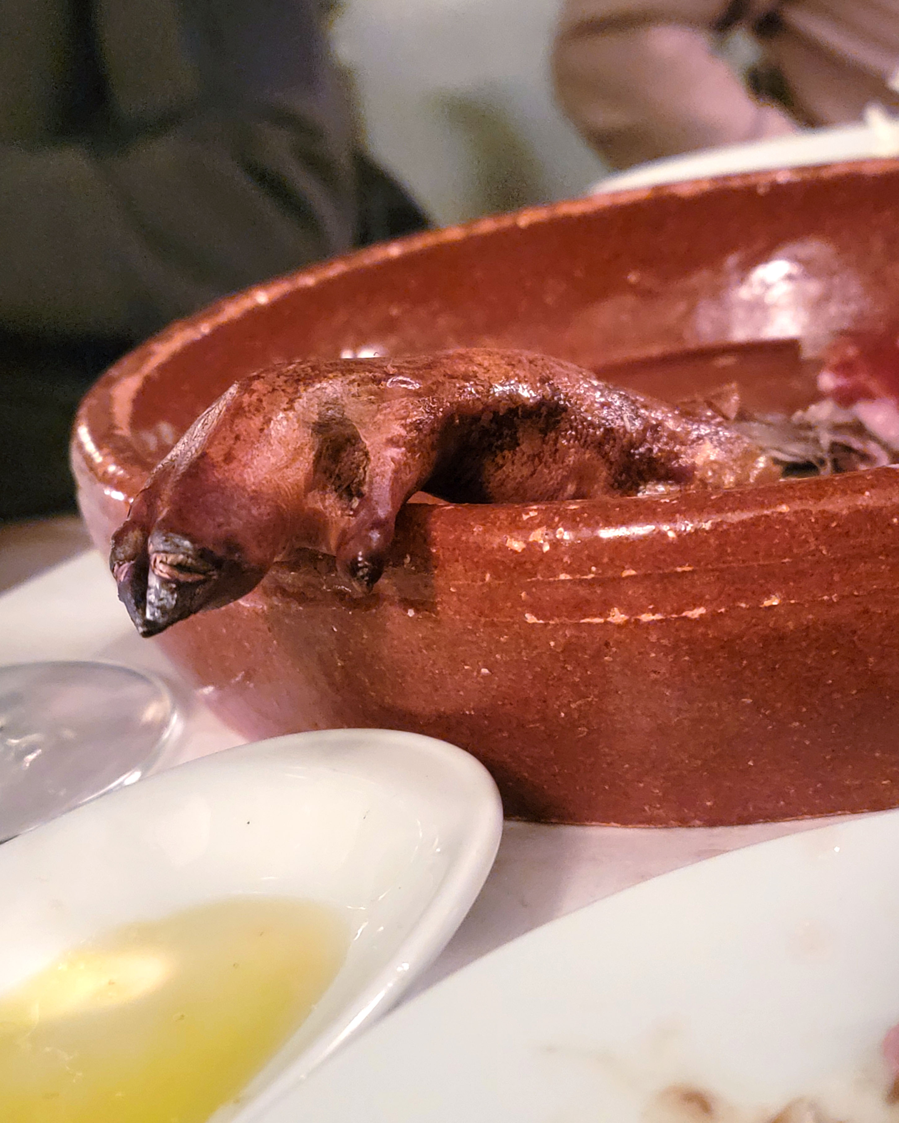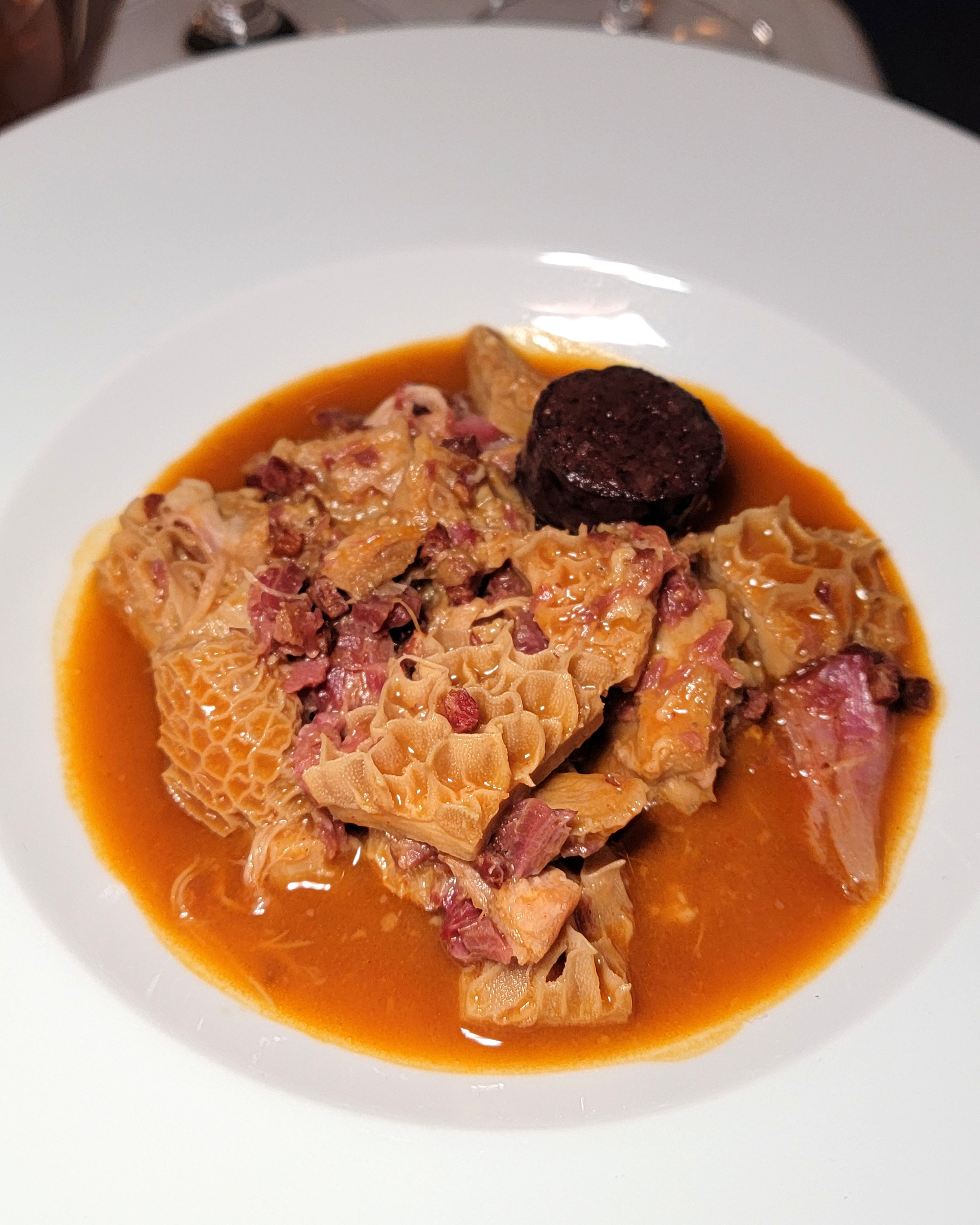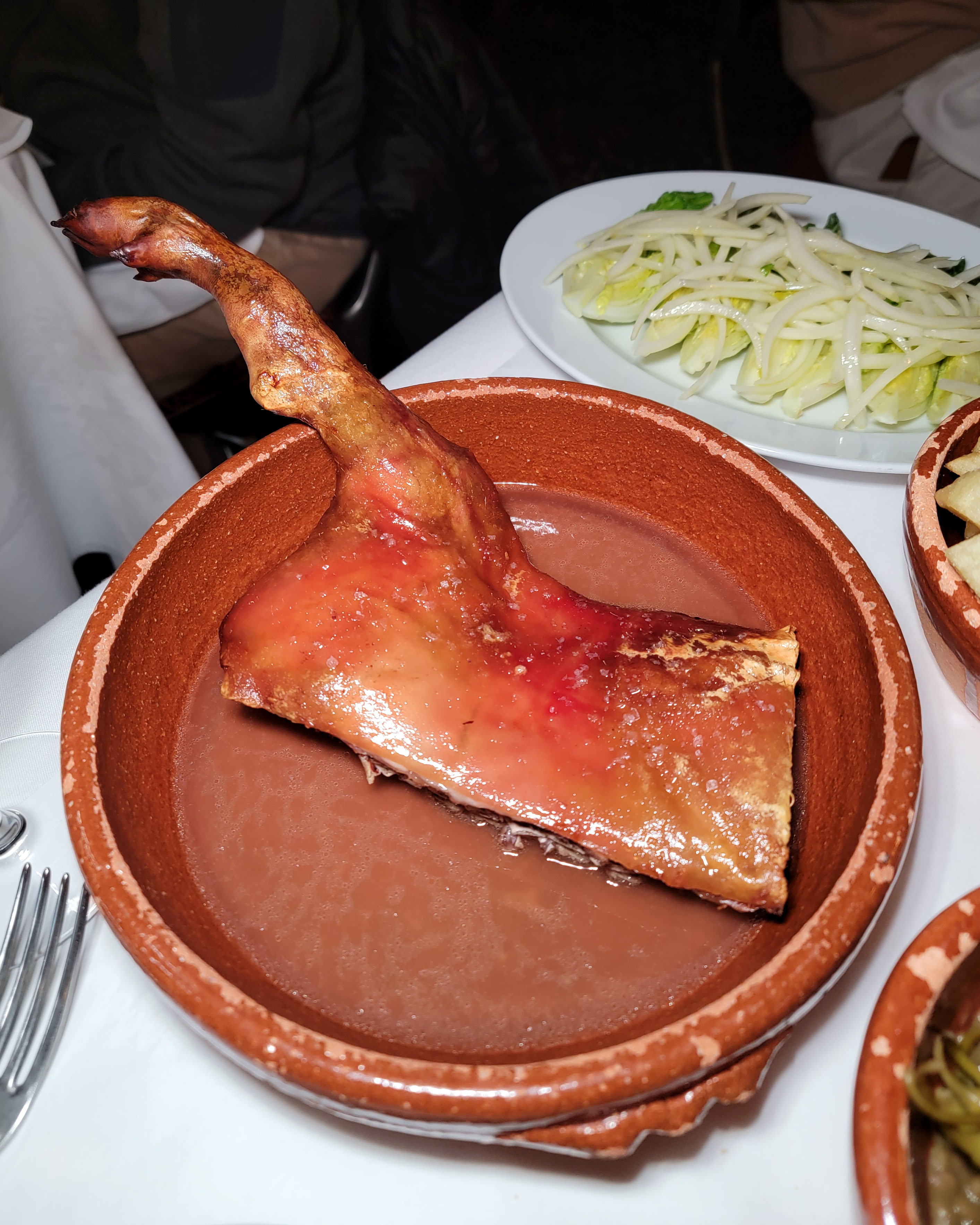 For mains, we had the tripe, the foie gras lentils, and the cochinillo asado (roast suckling pig).