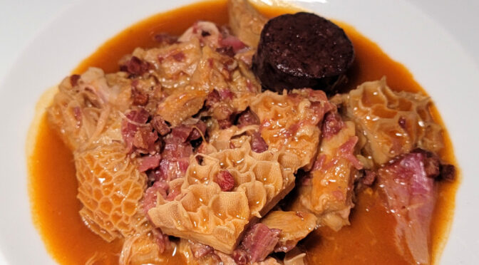 For mains, we had the tripe, the foie gras lentils, and the cochinillo asado (roast suckling pig).