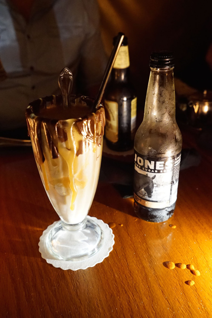 This place does a lot of interesting drinks too, like “rimmed” glasses of wine or root beer floats with chocolate and caramel: