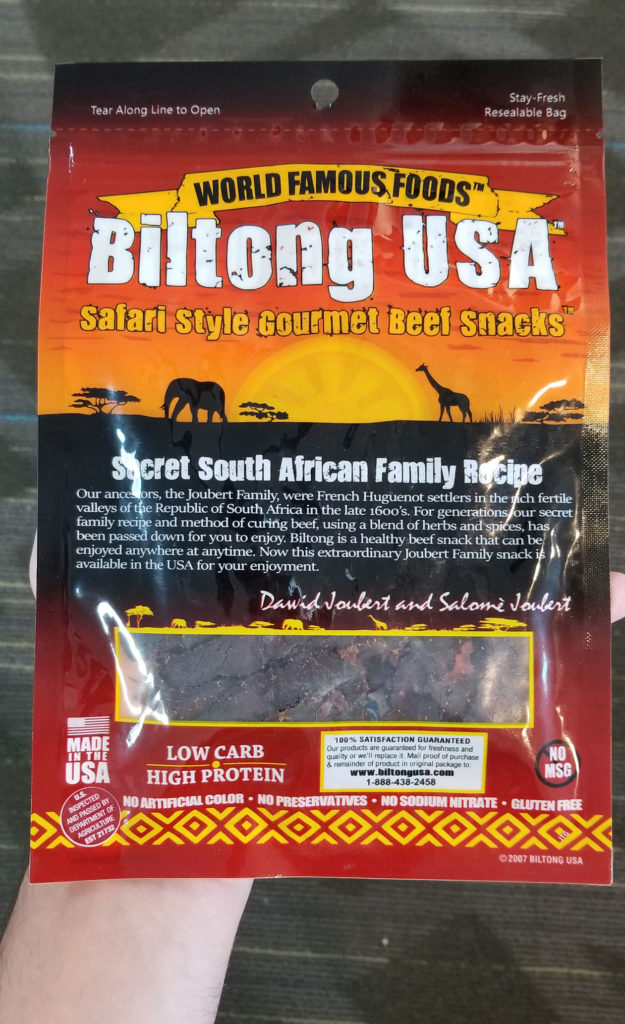 I was somewhat bummed until I saw two other meat snack brands that I hadn’t tried yet. The first was Biltong USA, and the second was Horton’s, a local brand out of Georgia.