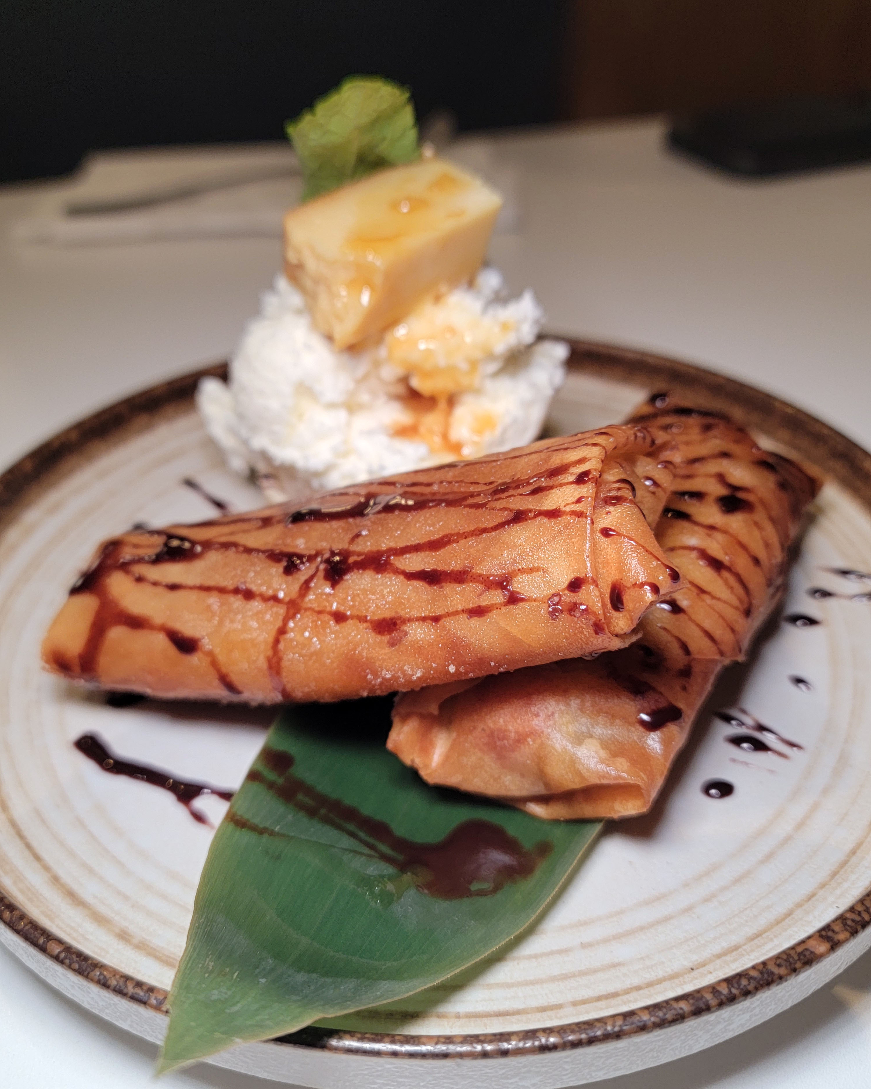 We finished off with banana and jack fruit egg rolls and guanabana ice cream.
