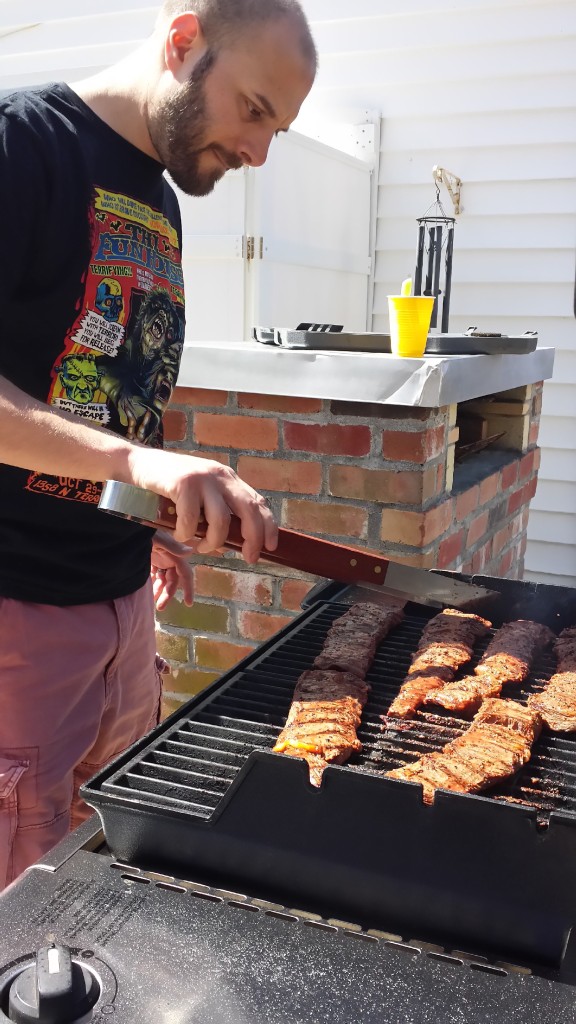 When you’re ready to eat, get your grill screaming hot. I’m talking 500 degrees or more. Drip-dry or paper-towel-dry the meat before you slap it on the grill. You want to get as much of the liquid off as you can, so that you end up with GRILLED meat instead of STEAMED meat. If you need that sauce for some reason, you can boil up the remainder of the marinade in a sauce pot to use as gravy topping, or you can baste lightly as the meat grills. If you have a little more time, you can reduce the marinade into a really awesome, thick BBQ sauce. It comes out delicious when you do it right.