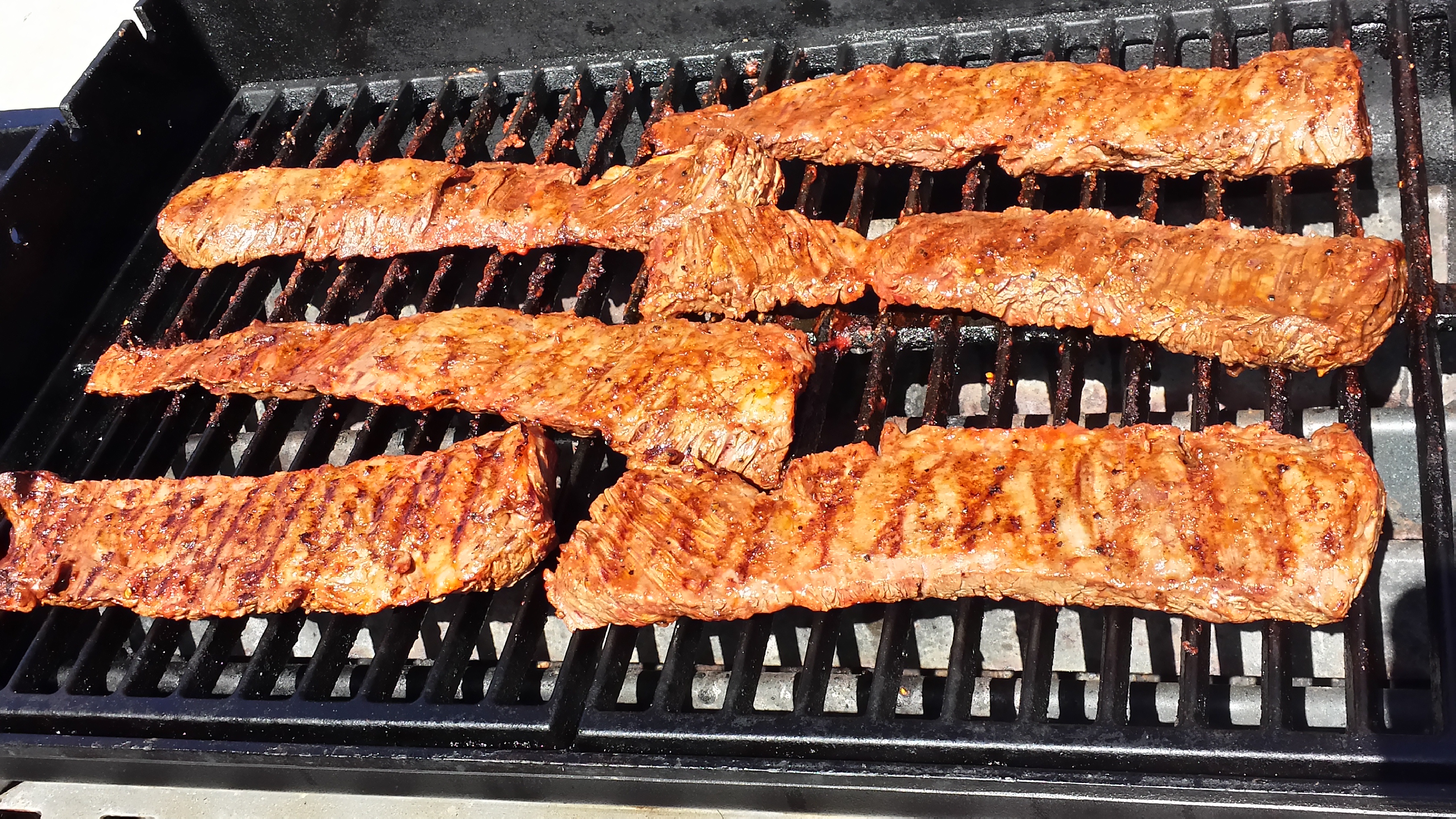 This is a pretty simple one, and a close riff on one of my earlier skirt steak recipes. Buy yourself a bunch of skirts, some habanero peppers and some tomato juice (or Bloody Mary mix), and you should be pretty much set with the rest of the shit in your pantry.