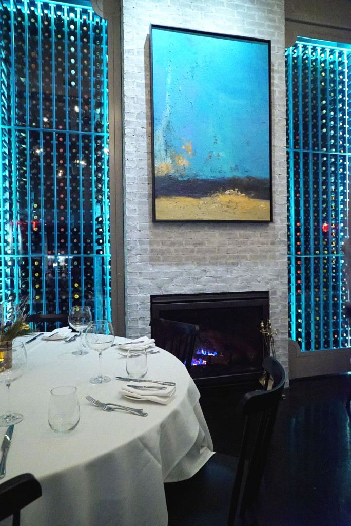 Amir has curated an absolutely incredible renovation from what was once a Chinese food restaurant and an office space into a really elegant and inviting two-floor steak joint. The downstairs is perfect for hanging out and sipping cocktails. Up a half a floor is a nice small dining area with a fireplace and high ceilings, with impressive wine shelving all over the walls.