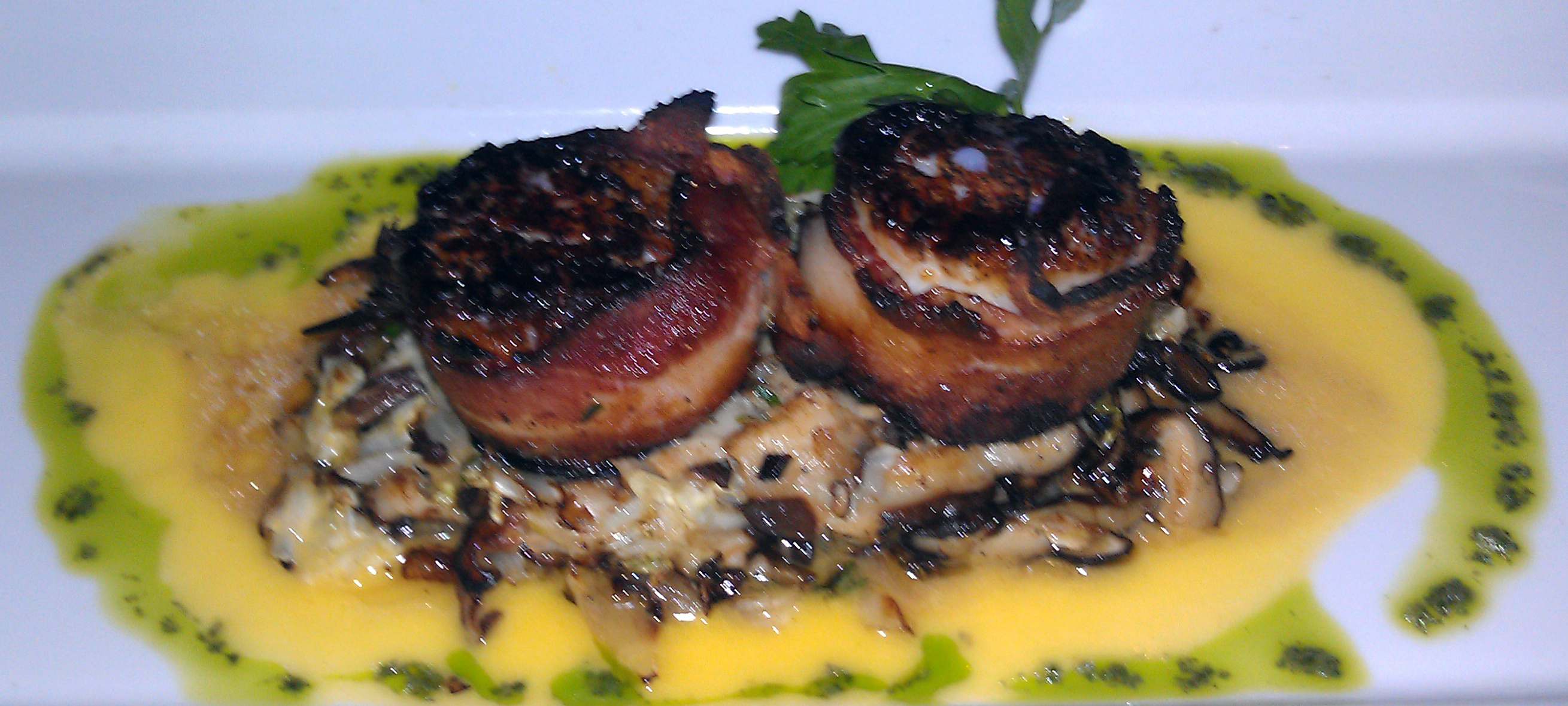 As mentioned above, I think my ribeye was about 22oz. This is on the good and generous side in terms of size. They did some fancy plating with my scallop appetizer, though there were only two pieces per order.