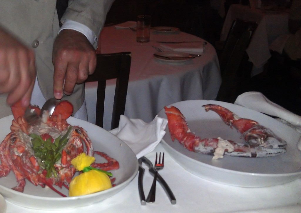 Service wasn’t bad here, but our waiter kinda disappeared halfway through the meal. As a result, we didn’t get the birthday dessert thingy that they were going to bring over to us (probably a slice of cake or something). The host asked us if they did as we were walking out. Oh well; not such a big deal considering we were stuffed. Otherwise service was okay aside from the absentee waiter. He nicely de-shelled the lobster tableside, which is always fun to watch. If you are wondering, I tend to celebrate my birthday for a month or two in either direction of the actual date, because I am that awesome.