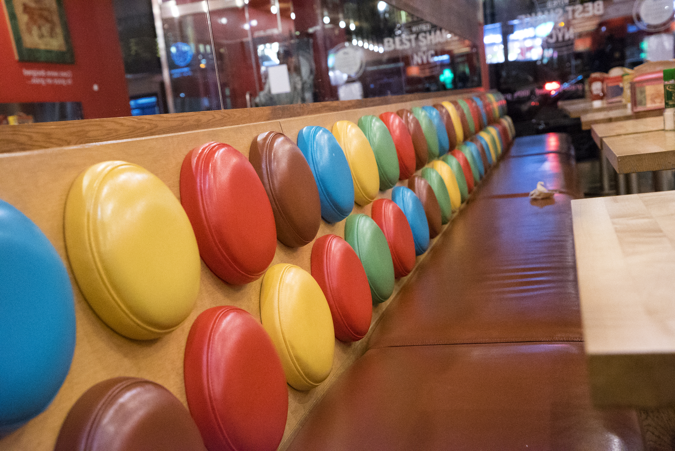 The decor makes it feel like you’re in someone’s 1980’s style finished basement, but updated for today’s interior design norms.