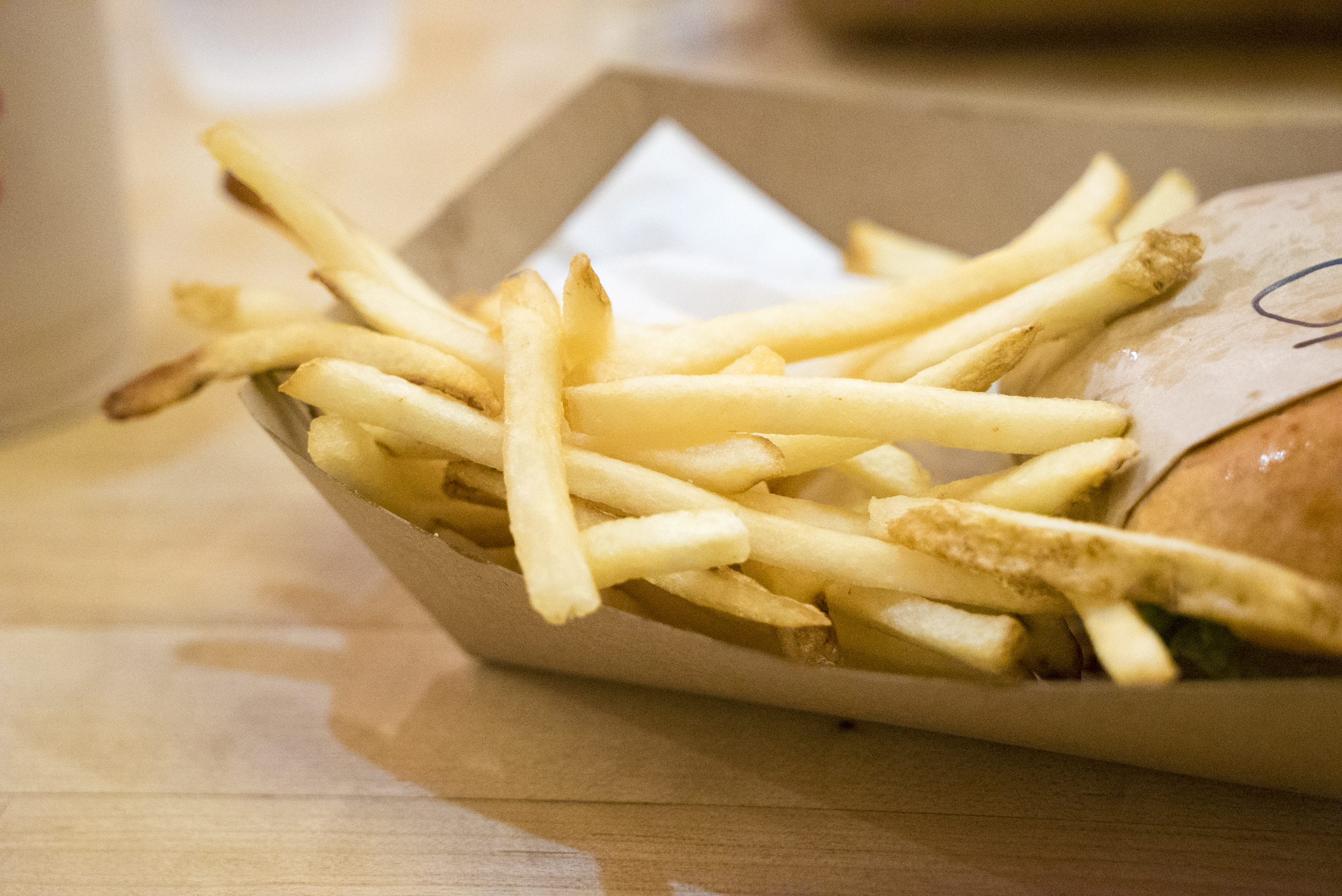 The fries here are on par with Mc Donald’s. Golden shoestring types, with a good crisp and well seasoned.