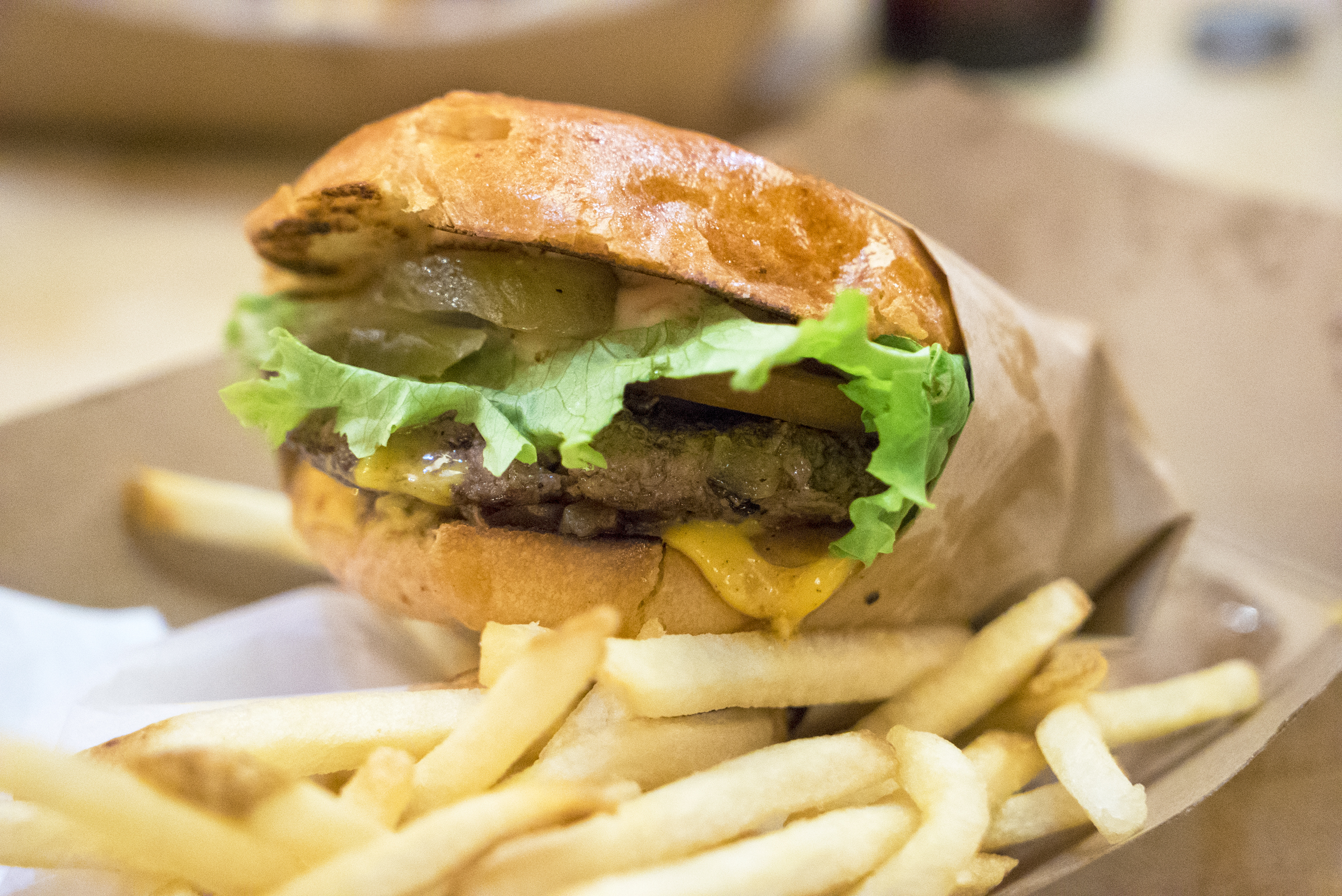 Good quality burgers, nicely cooked, great seasoning, quality buns and toppings. I had the “beautiful day” burger. American cheese, lettuce tomato pickle and grilled onions. Awesome. Next time I would get a second patty on top.