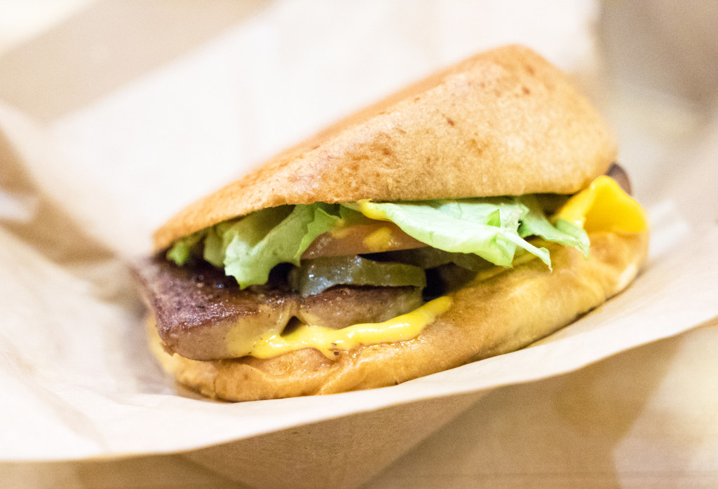 They split and grill the dog long ways, and then cut the dog in half and arrange it on a hamburger bun. Pretty cool. This one was topped with lettuce, tomato, American, mustard and pickles. Delicious, but the burger take the stack here.