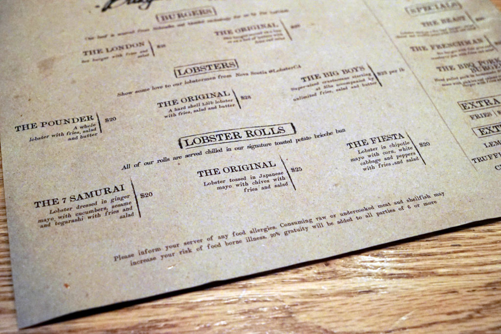 Now let’s get down to the new lobster roll items. You can see them flanking the original on the menu below.