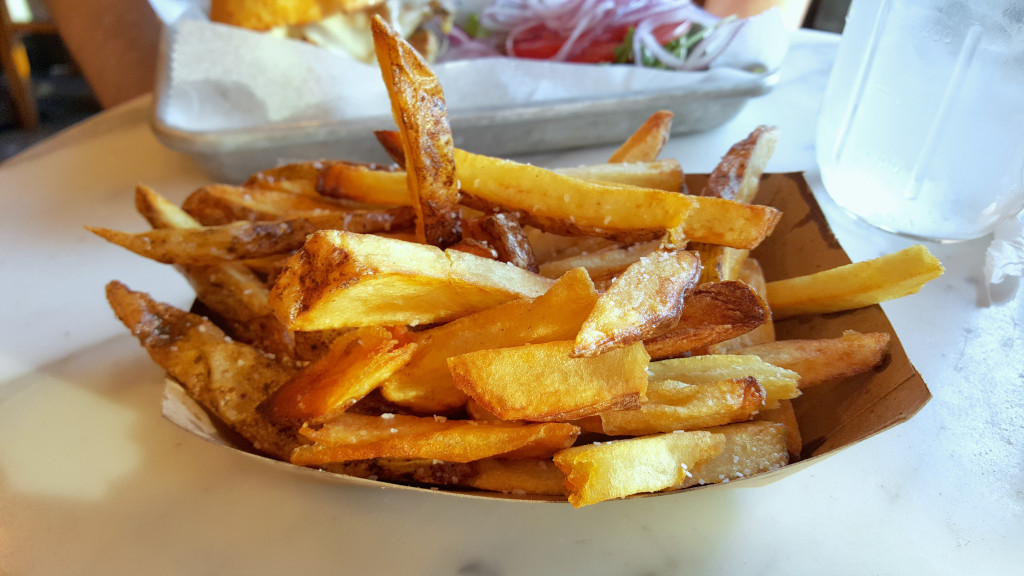 The fries were natural cut steak fries. Not too doughy or greasy, with a nice crisp given the style (these usually aren’t as crispy for some reason). Course salt was a nice touch: