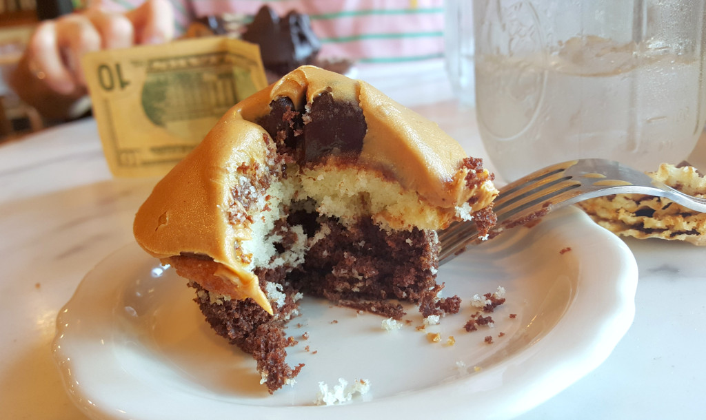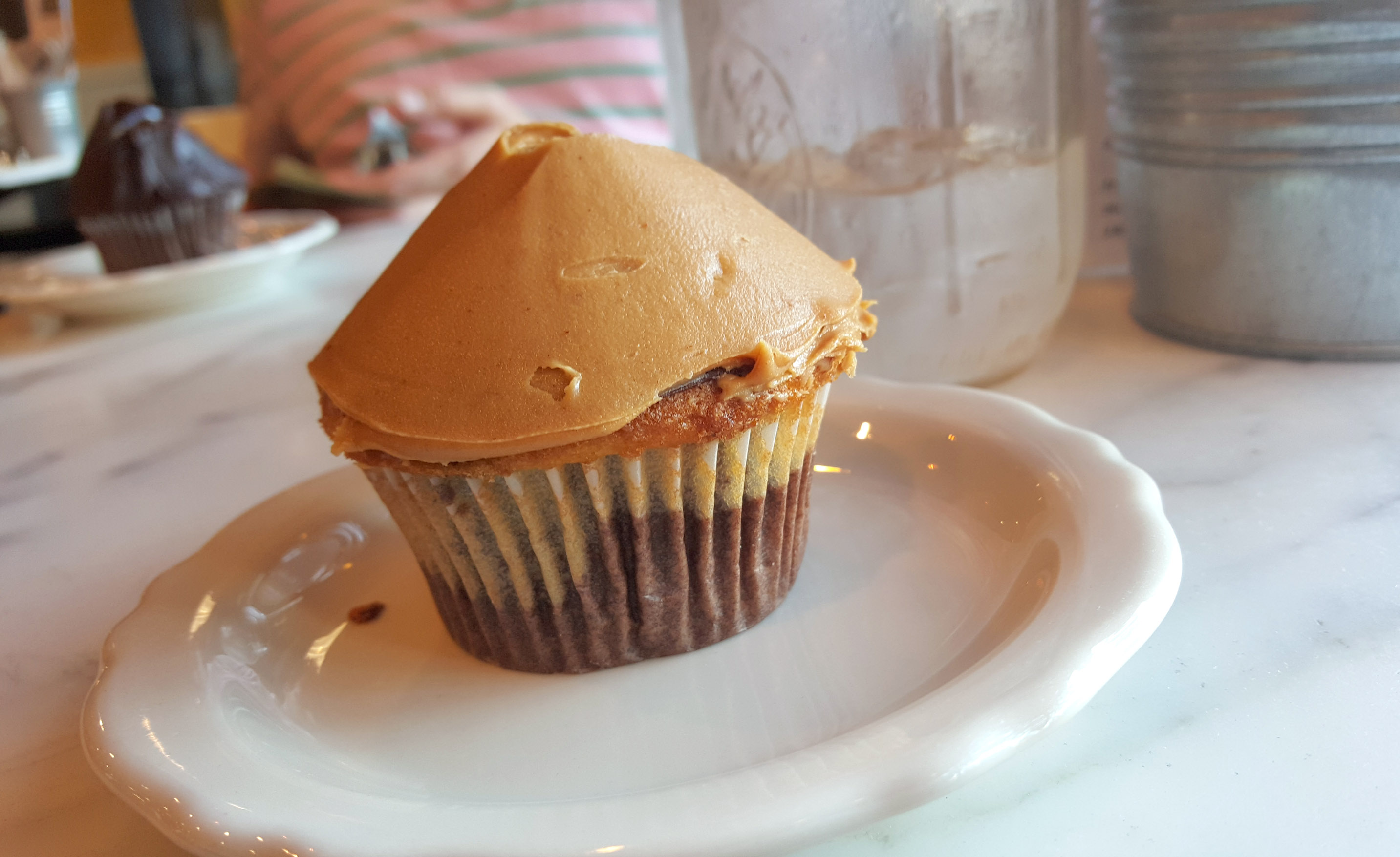 For my cupcake, I went with marble cake (chocolate and vanilla) topped with a peanut butter frosting. The cake was dry, but the peanut butter frosting was nice, even if it was only just a smear of Jiffy. Not even close to Cake Dealer quality, but the place makes for an interesting concept.