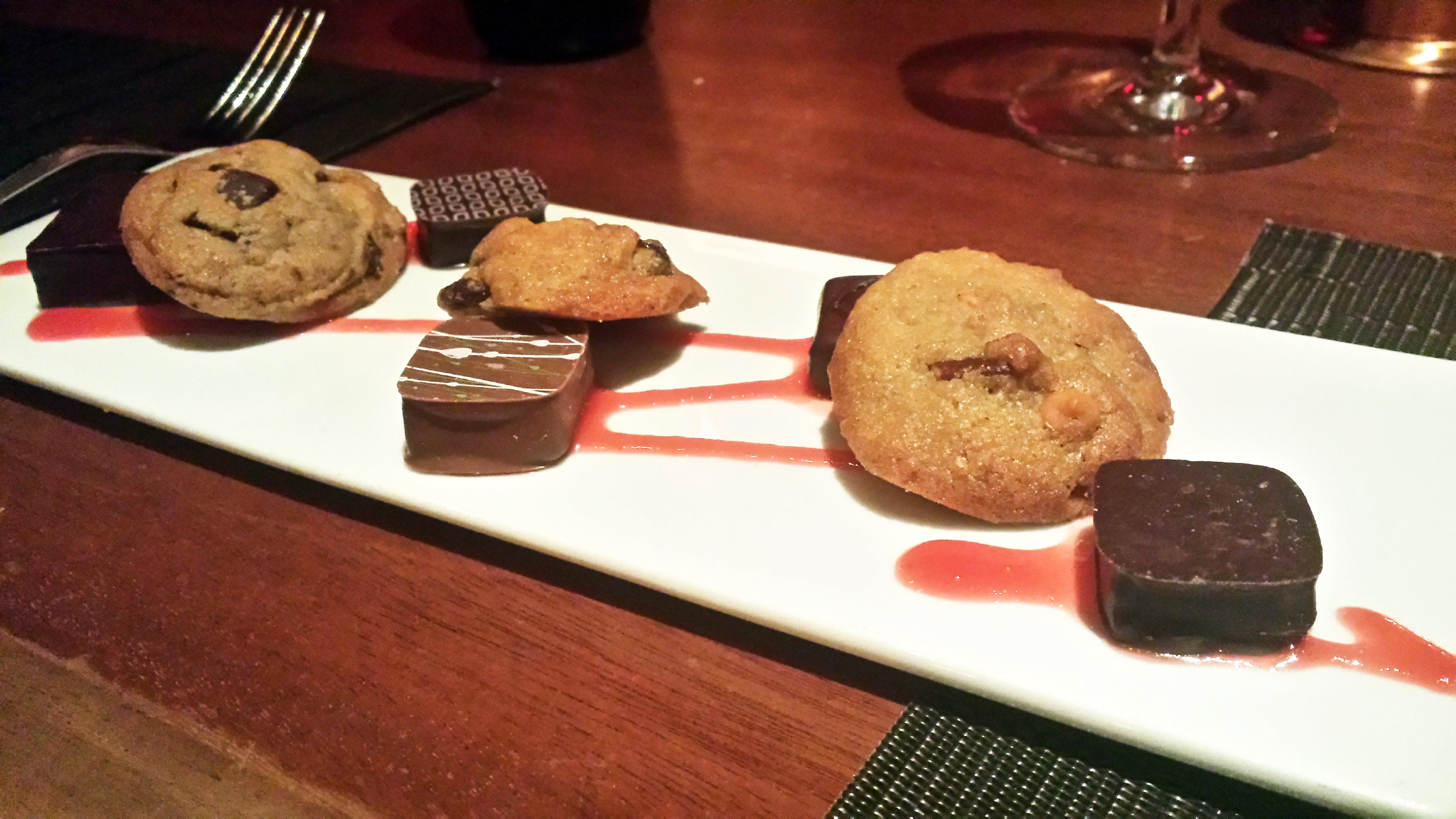 Last came a little plate of cookies and chocolates. The cookies were great, made in-house. The chocolates were pretty good too, nice and rich, but not made in-house.