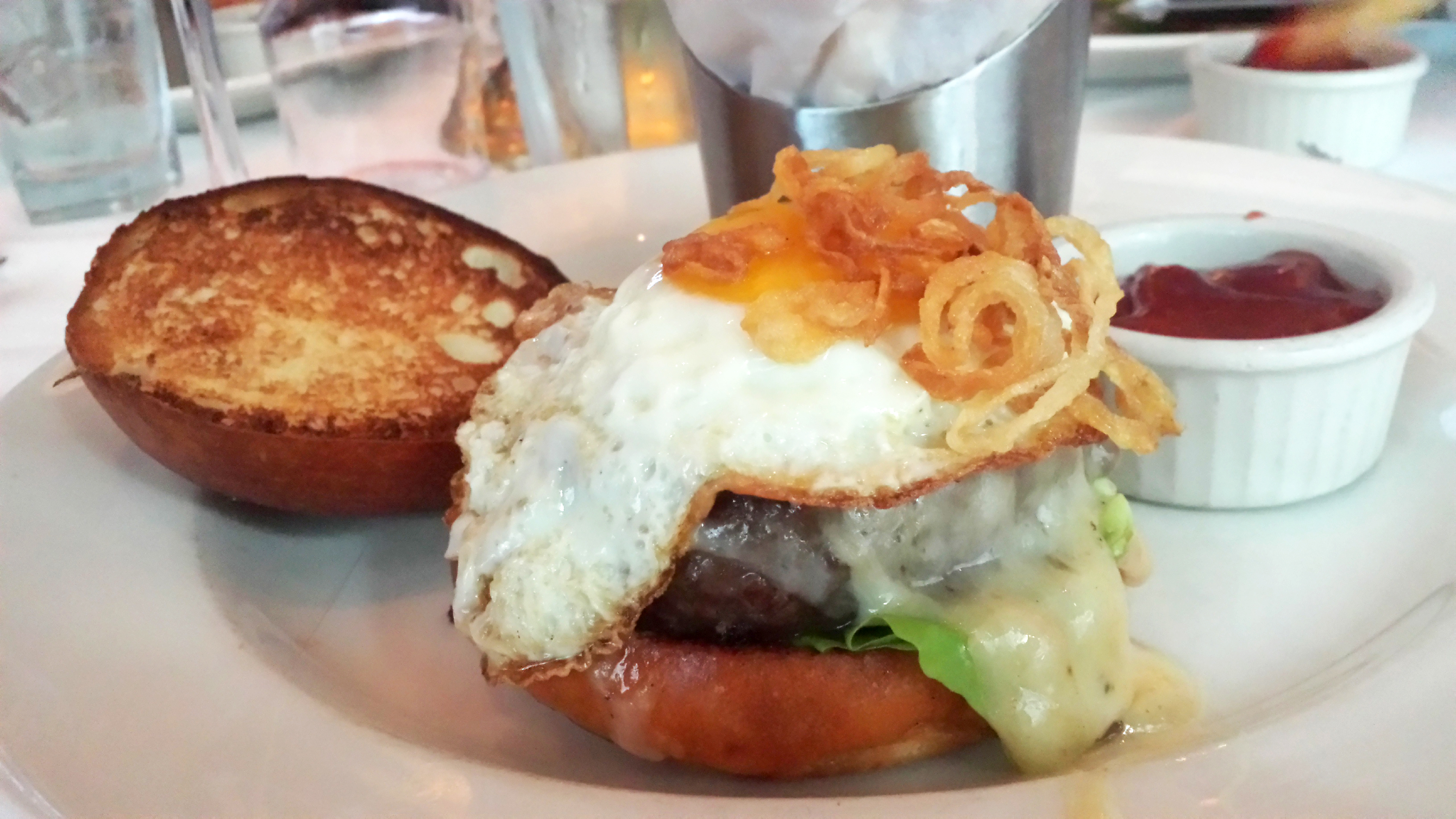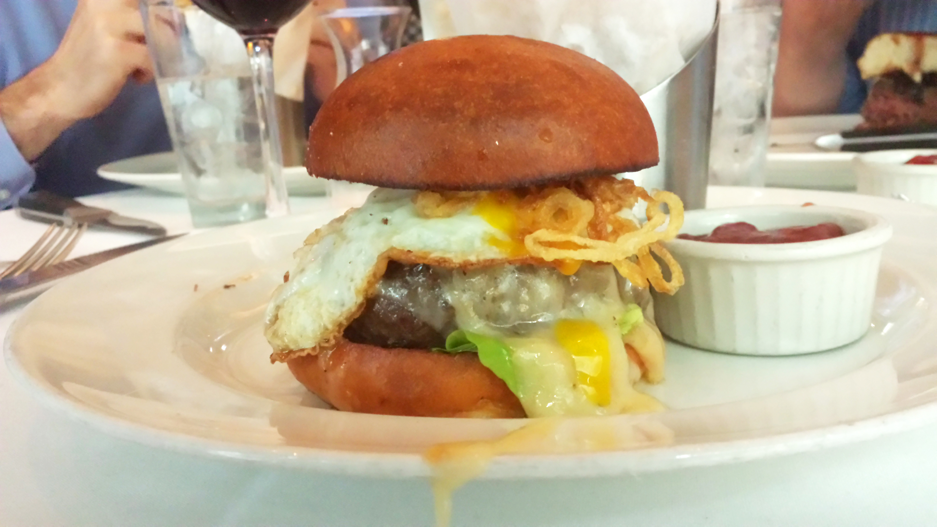 The ultimate burger is here at Capital Grill for the fall season, through around Thanksgiving. There are three different styles with a wine pairing for each. The one I stuffed down my esophagus tonight was 8oz of American Wagyu beef with havarti cheese, a fried egg and crispy fried onions on top. In other words it was a fucking cummy wet-dream on a bun.