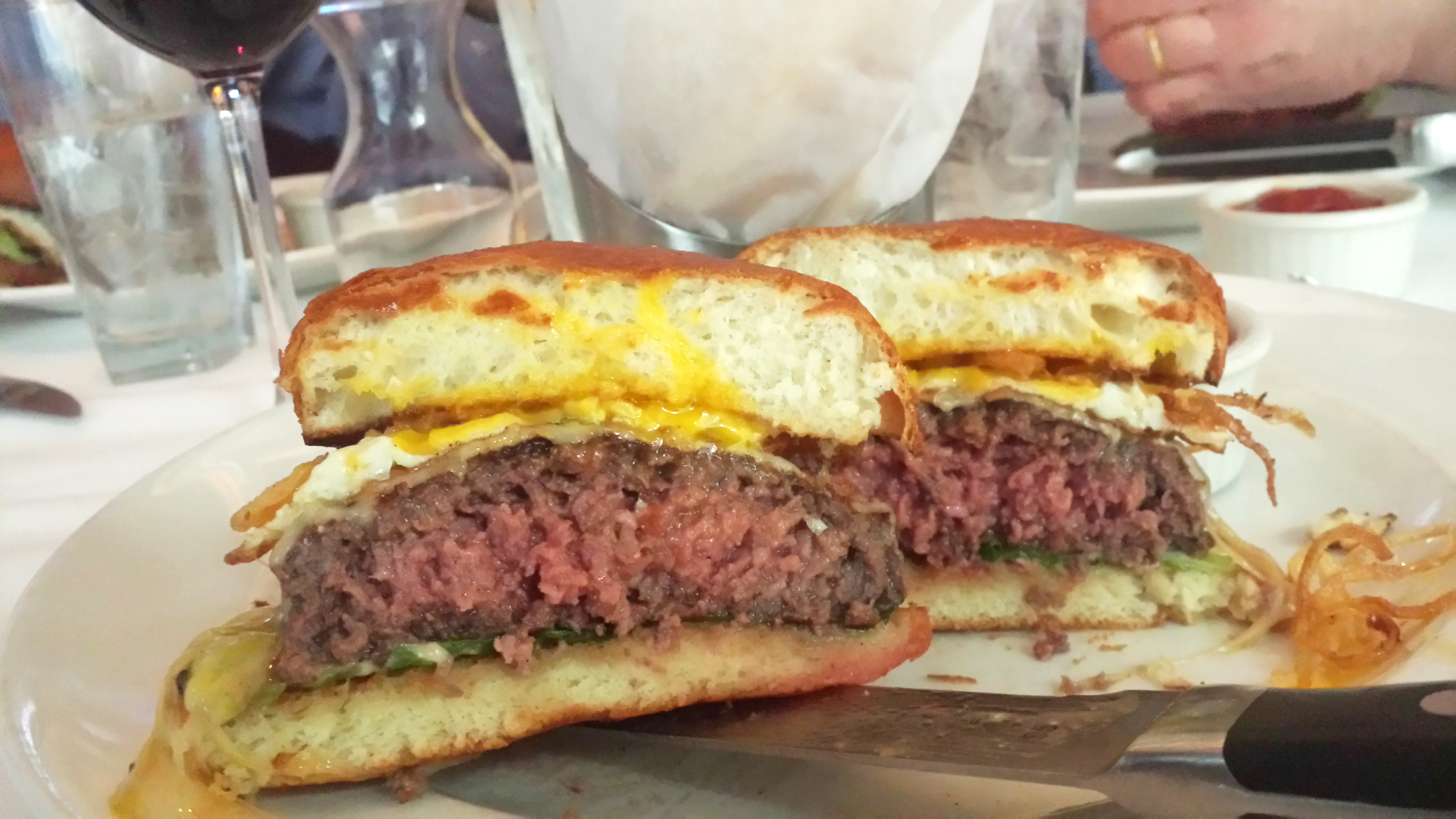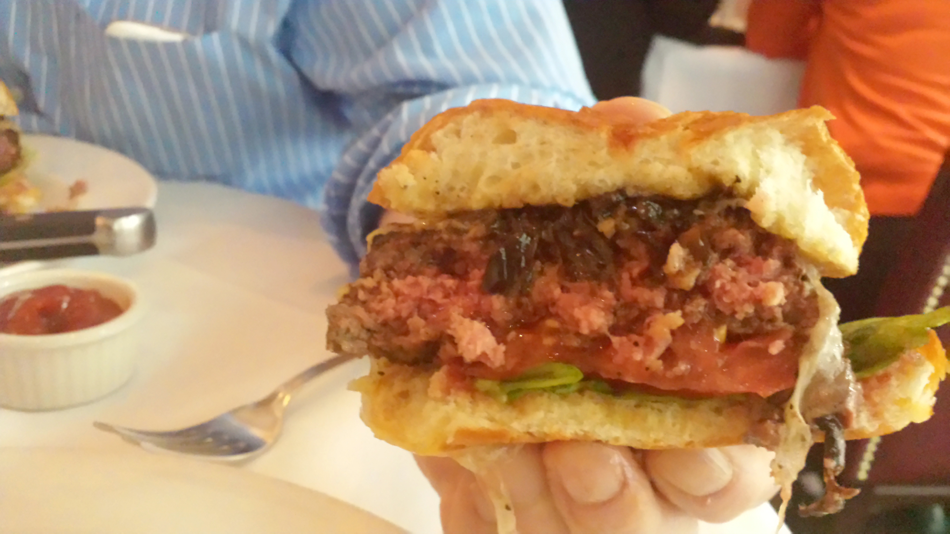 Now on to the food pr0n. The burger was juicy as all fuck, tender and delicious. The beef quality is off the charts. This is by far the best burger I’ve had at a steakhouse. Look at this shit: