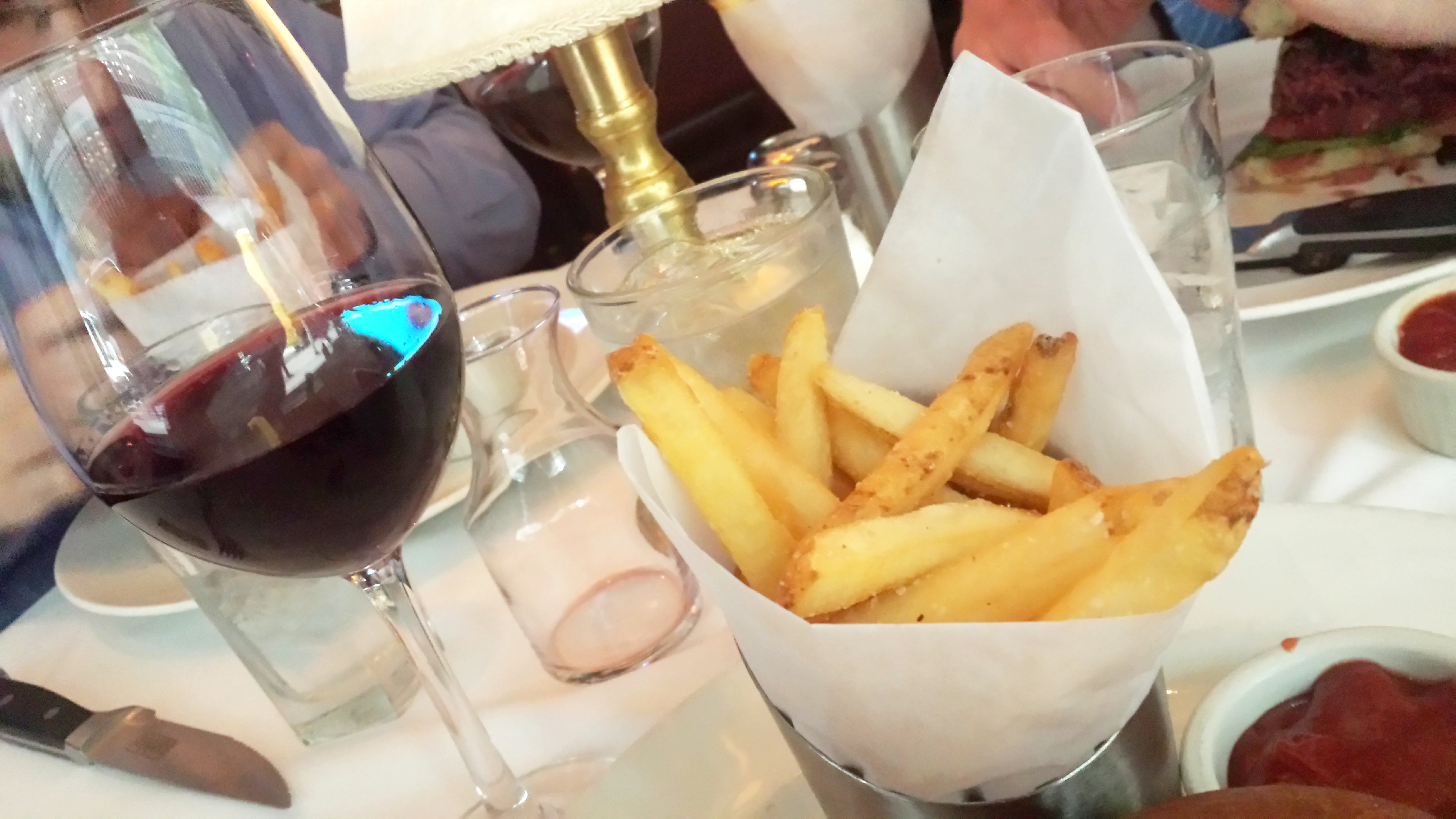 The egg was perfectly cooked sunny-side up and it dribbled down nicely into the meat without fucking up the bun. Like a sloppy BJ without any chick-spit hitting your balls or the sheets underneath your ass. Unreal. And the fries were perfect! Nice and crispy, well seasoned, soft inside. They offer a parmesan herb french fry too, with their regular menu burger, which I also want to try (these Wagyu fucks are a special offering only). And the wine I picked was a really nice Pinot Noir. Smooth.
