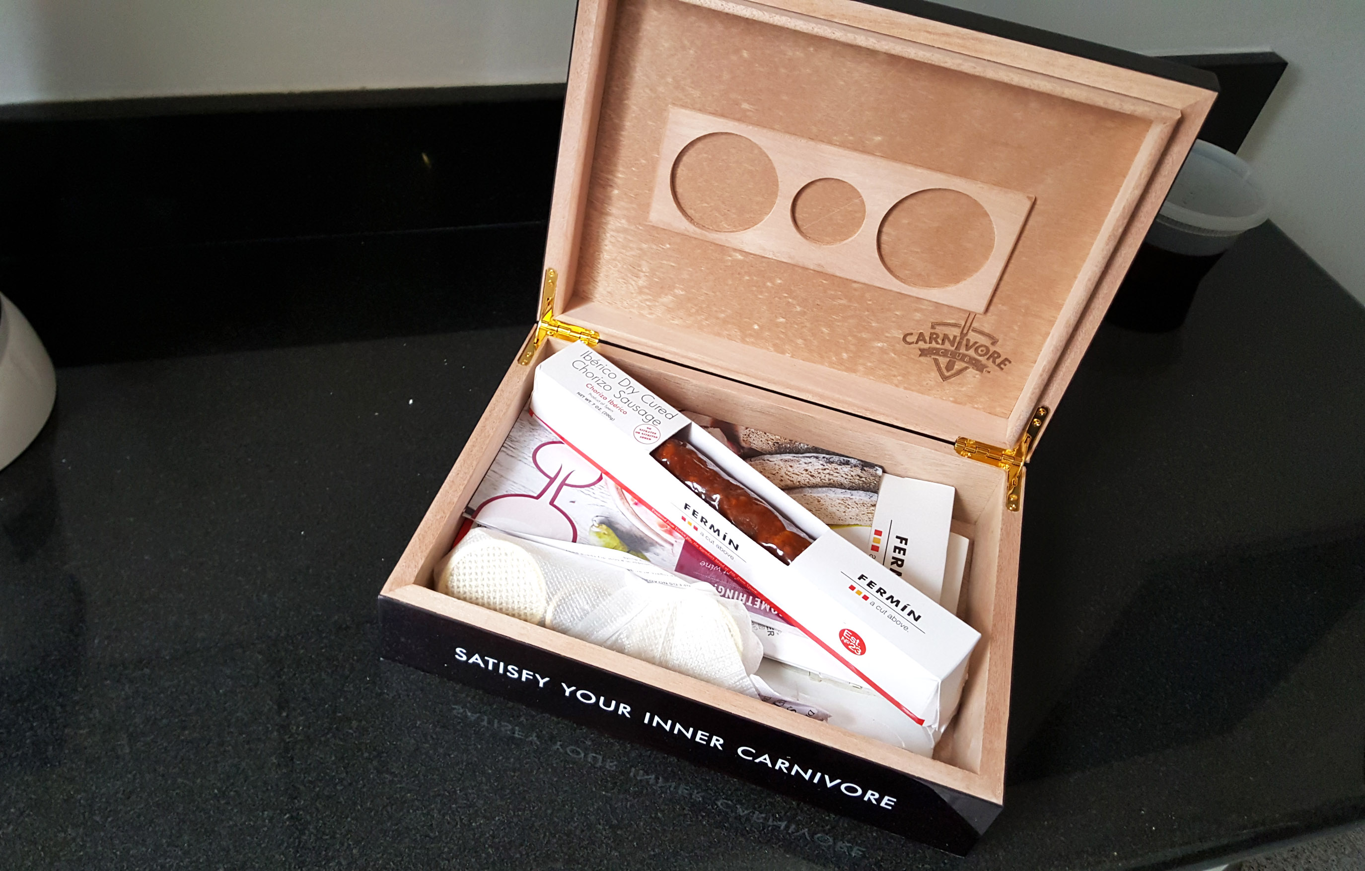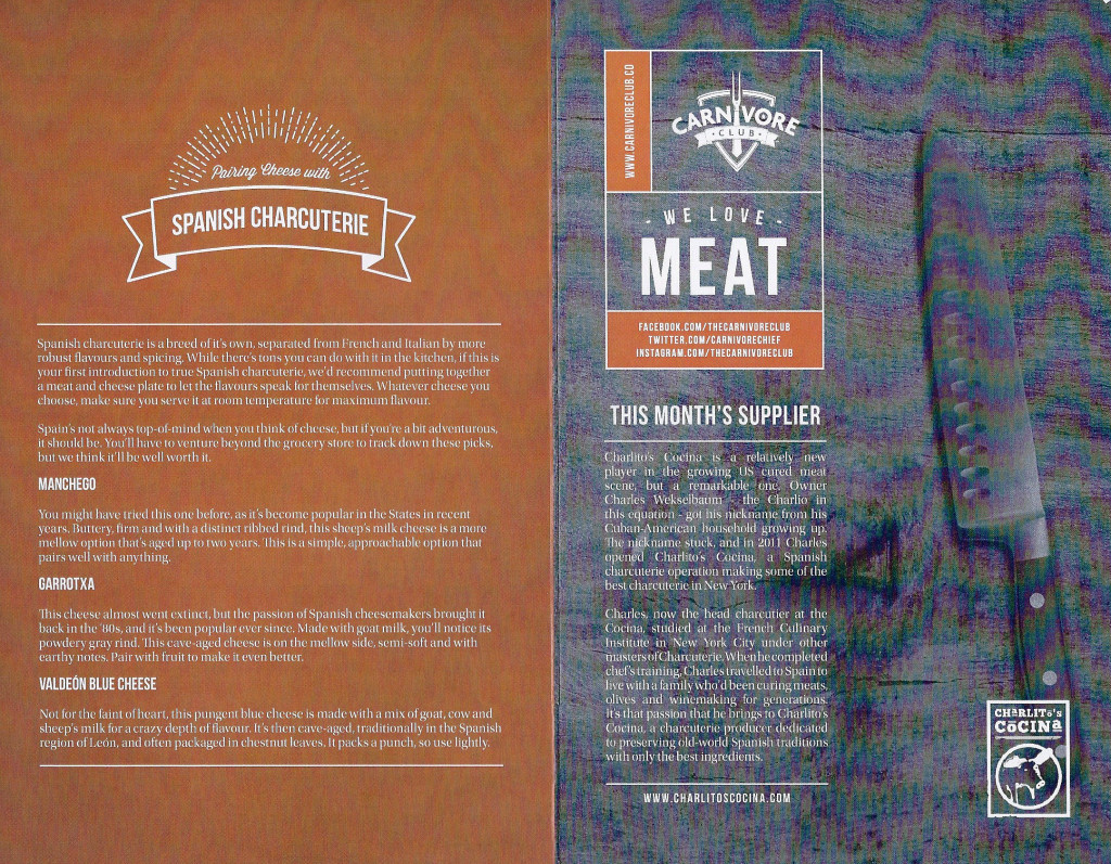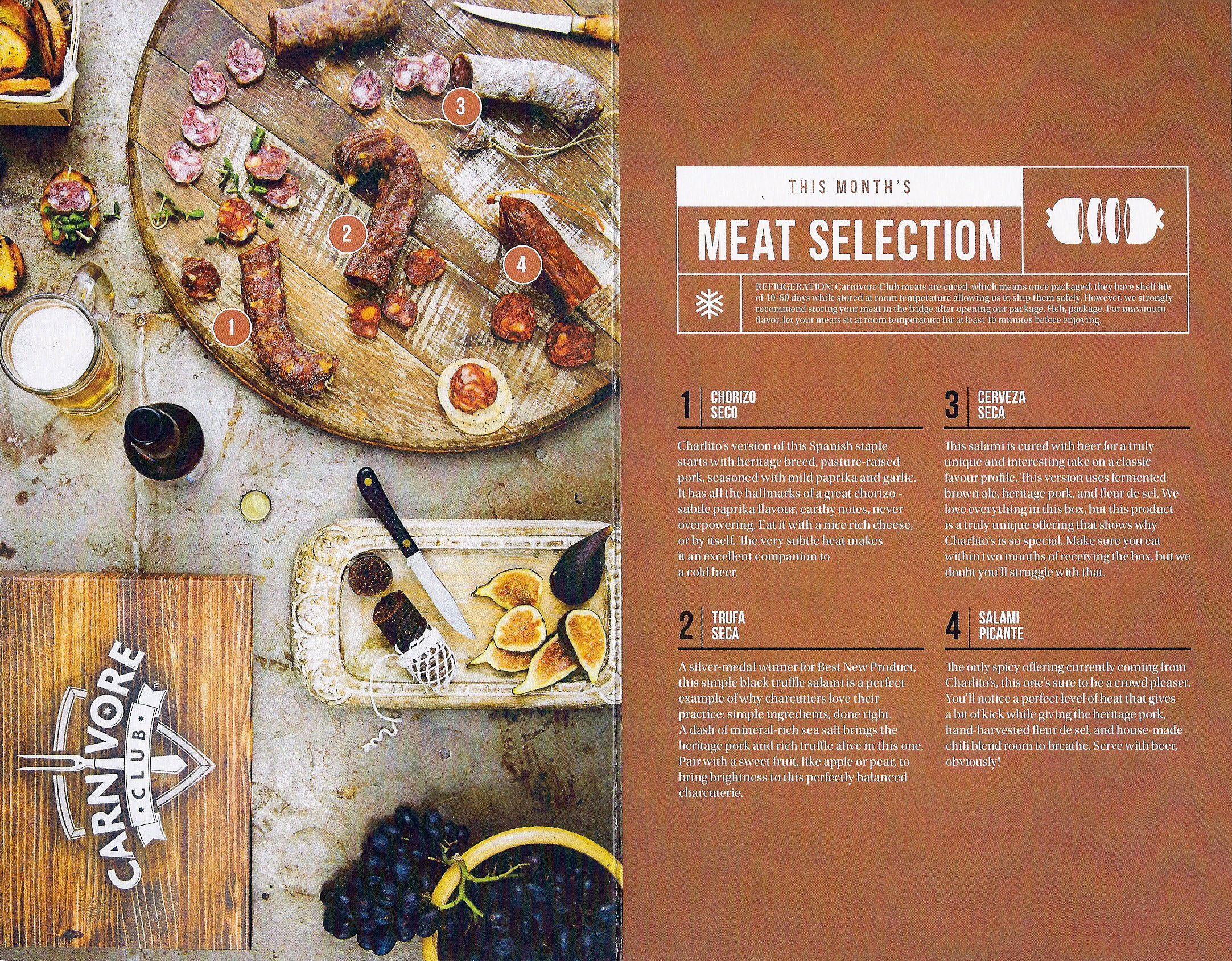 Inside, there is a card that tells you all about the meats you are about to eat, along with suggested pairings like cheeses.