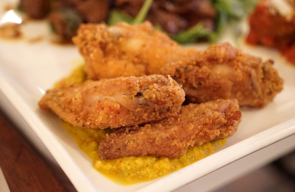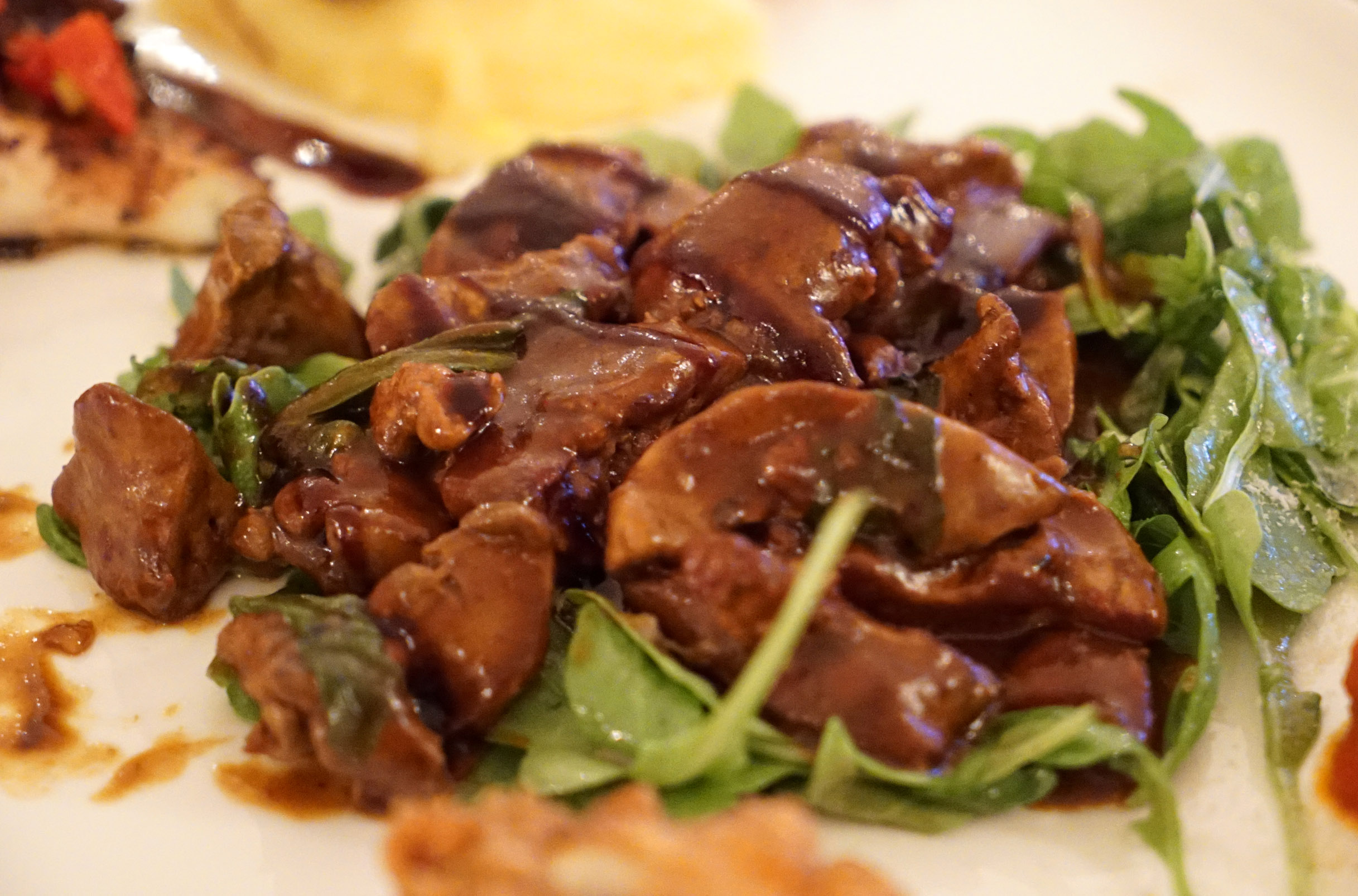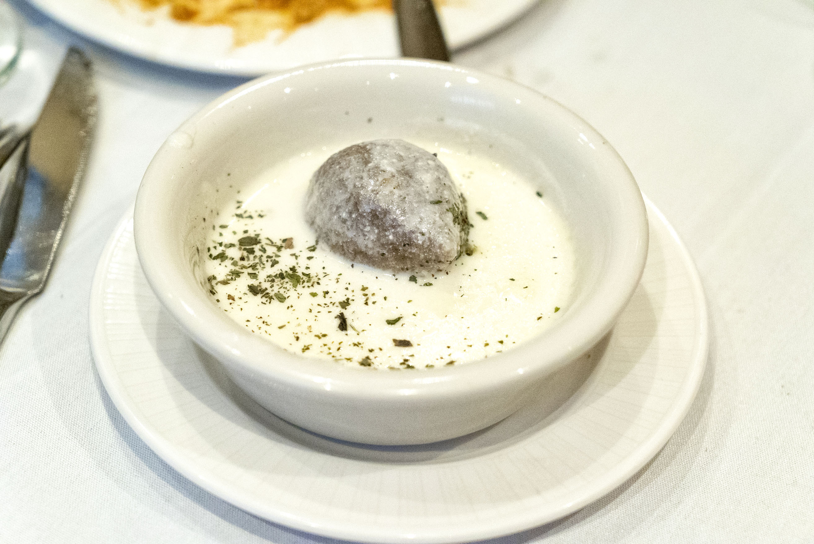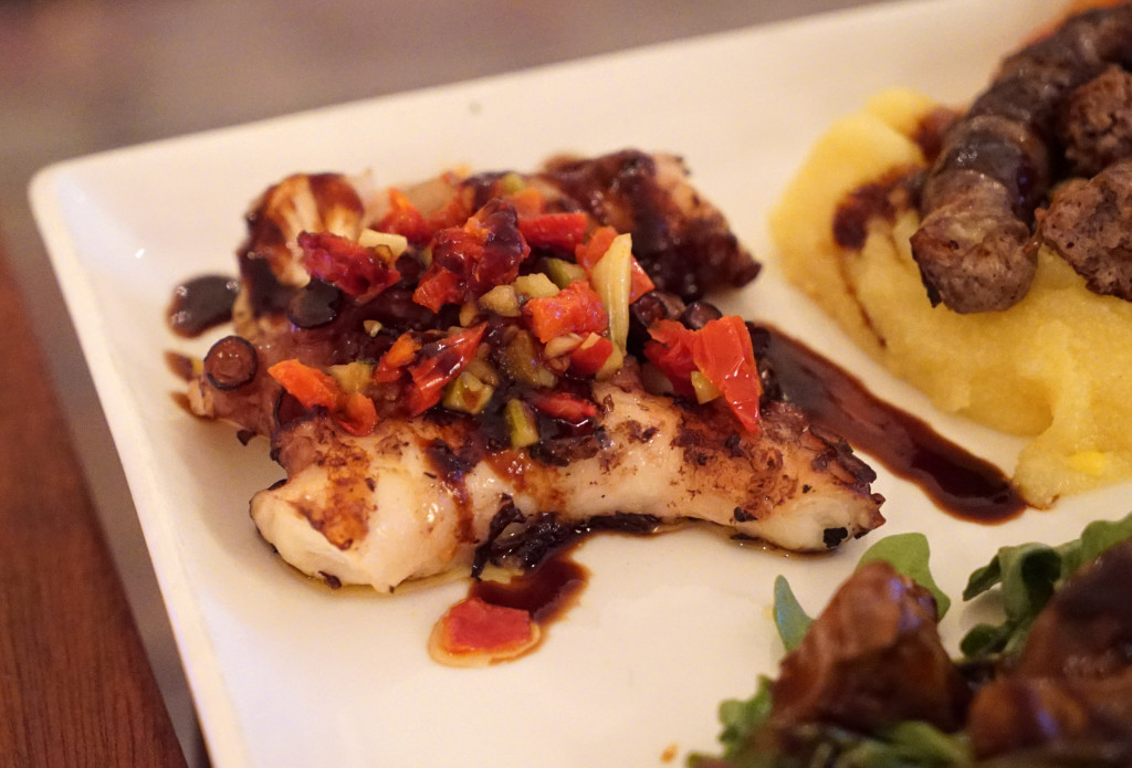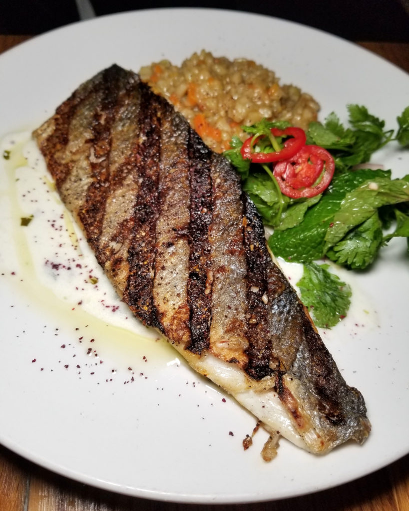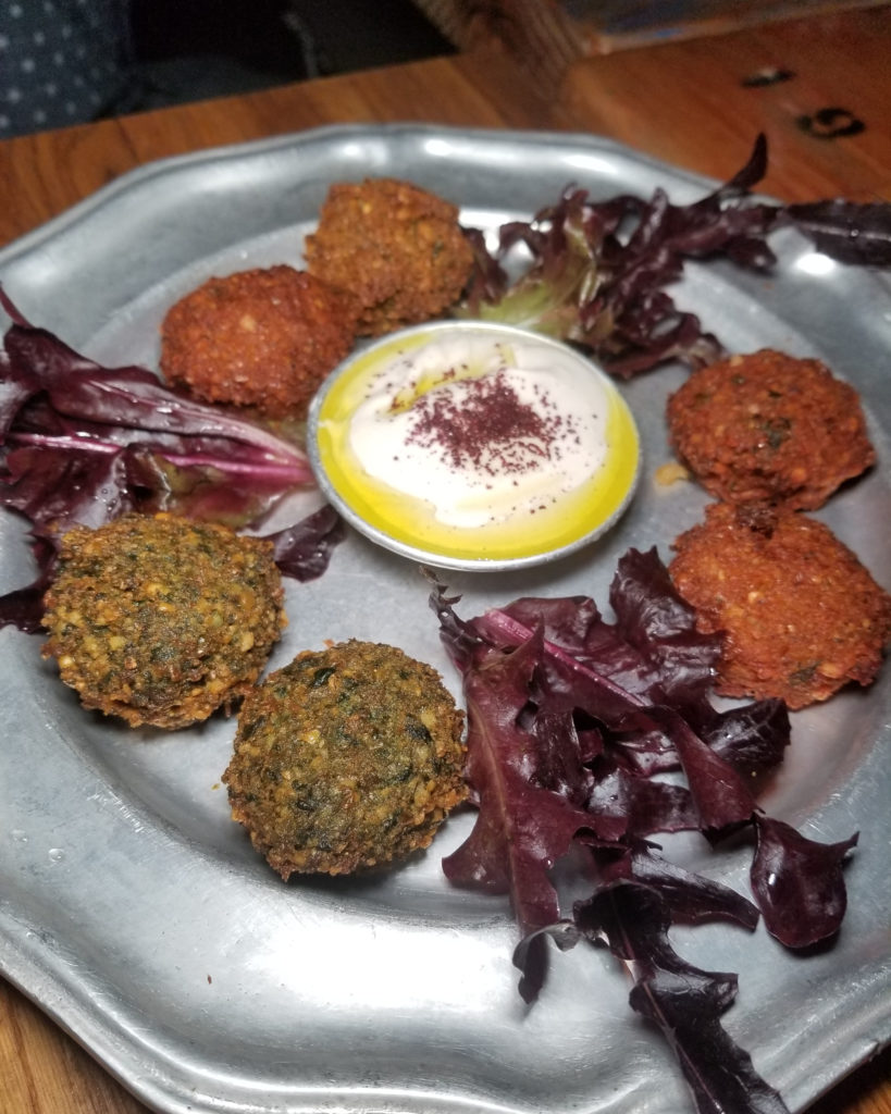 As we ventured on from the veggie mezes, our first meat course was kibbe with laban. This is ground lamb meatballs mixed with pine nuts and cracked wheat in a warm, tangy yogurt sauce. The texture was soft and the flavor was rich, just like an Italian meatball, but the sauce came with the zesty brightness typically associated with Mediterranean yogurt sauces.