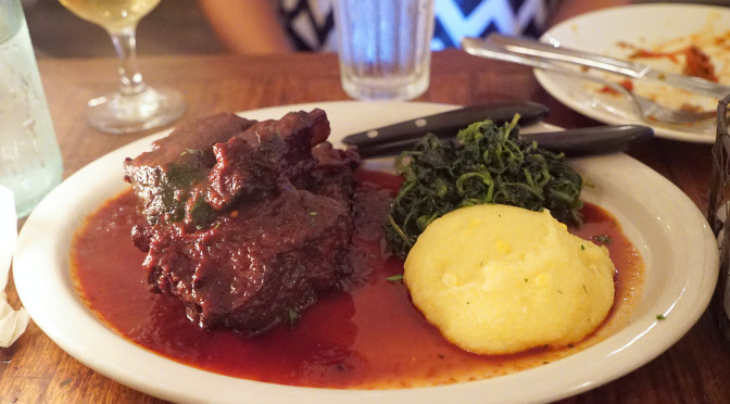 Last but not least was baklava. This famous sweet, near-east treat may be well-worn territory for most Middle Eastern or Mediterranean joints, but for me it is still a refreshing change of pace from the regular dessert grind. This, too, was topped with rose water and honey. It was a bit sweet for most at the table, but I really enjoyed it. I’ve had some over-the-top sweet baklava in my day, and this did not fall into that category for me. The filo dough was really nice too: light, papery and delicious. I think everything was made from scratch.